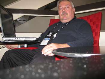 I found a red chair, modern, with a swivel desk that allows me to sit and type on the laptop via WIFI and WordPress. I took a picture of myself in the chair, which I will add to this posting later. Heck, if I can find my camera connector, I may do it now.
