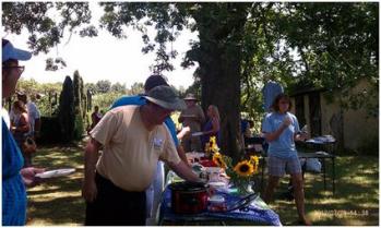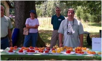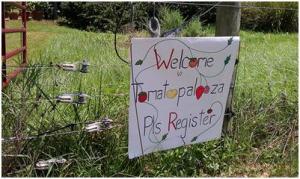 Let me backtrack and tell you of Tomatopalooza 2012. A sign appeared on the country road which pointed to Tomatopalooza. I turned down a winding sandy dirt road (grass in the middle) and shortly turned into a newly mown field where about twenty cars were already parked. I pulled up as near to the entrance as I could and as I stepped out the muggy heat hit me about the time my sandaled feet stepped into the field. I eyed my feet hoping that there were no snakes that had returned to their home after the field had been mowed.