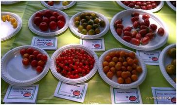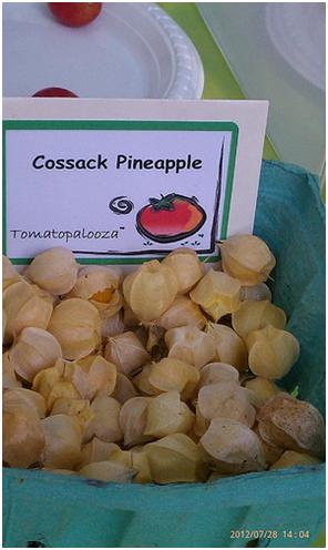 The other unusual tomato that I enjoyed was the “Cossack Pineapple”. This was a small yellowish fruit that had a paper shell (much like a China Berry, or a Tomatillo – but much smaller). I peeled the paper shell off and popped the berry like fruit into my mouth and “Wow!” It was very sweet and tasted like a “pineapple”. I don’t think I would have called it a tomato, if it wasn’t at the event. I think a chef could leave these in their paper shells and place a few on a salad. I would call them, “little gifts” and as you eat your salad you can peel the paper off and eat one of these “every so often”. A “Black Cherry” was another honorable mention, which was sweet and dark red, but nowhere near as sweet at the little yellow fruit.