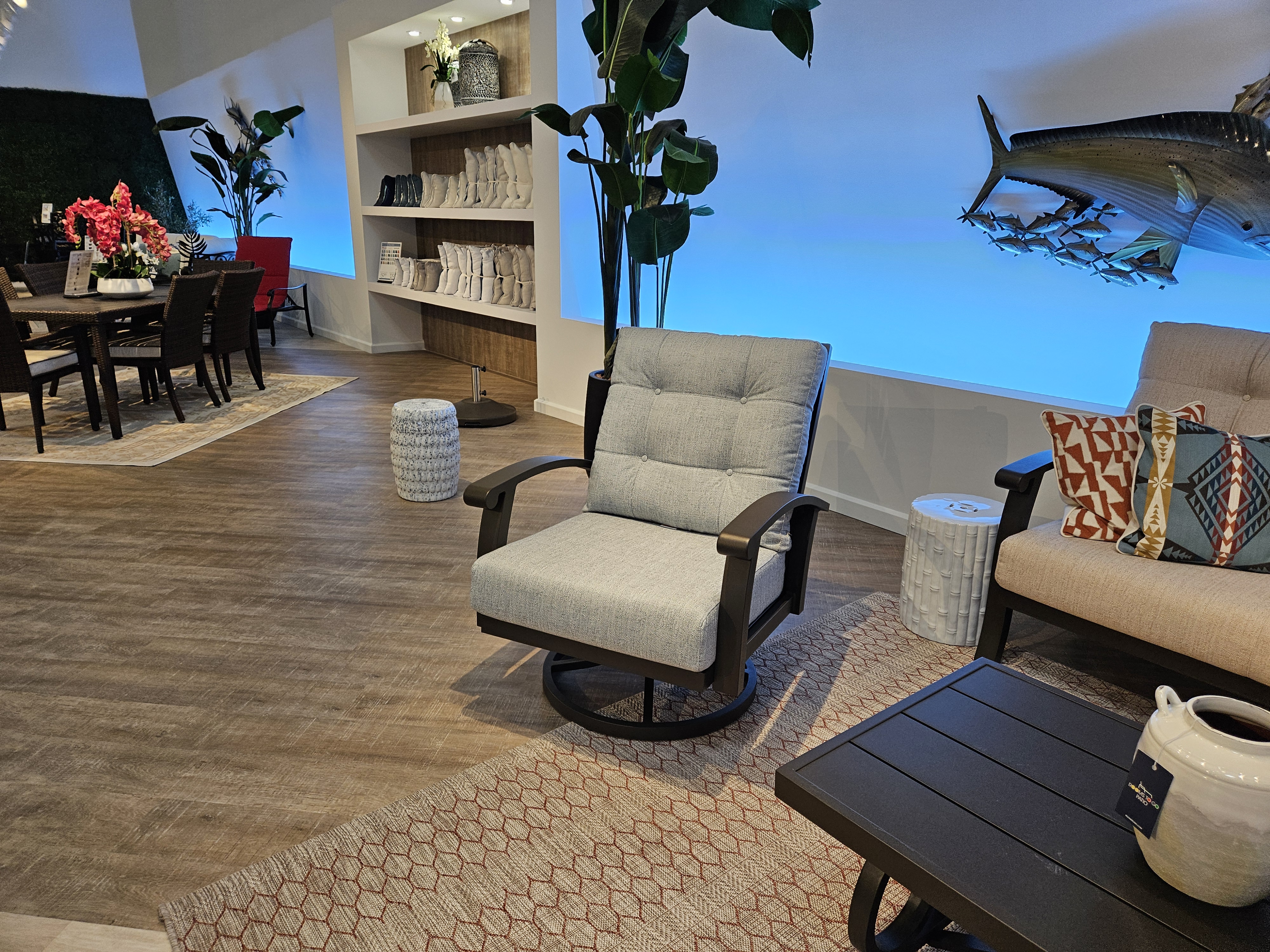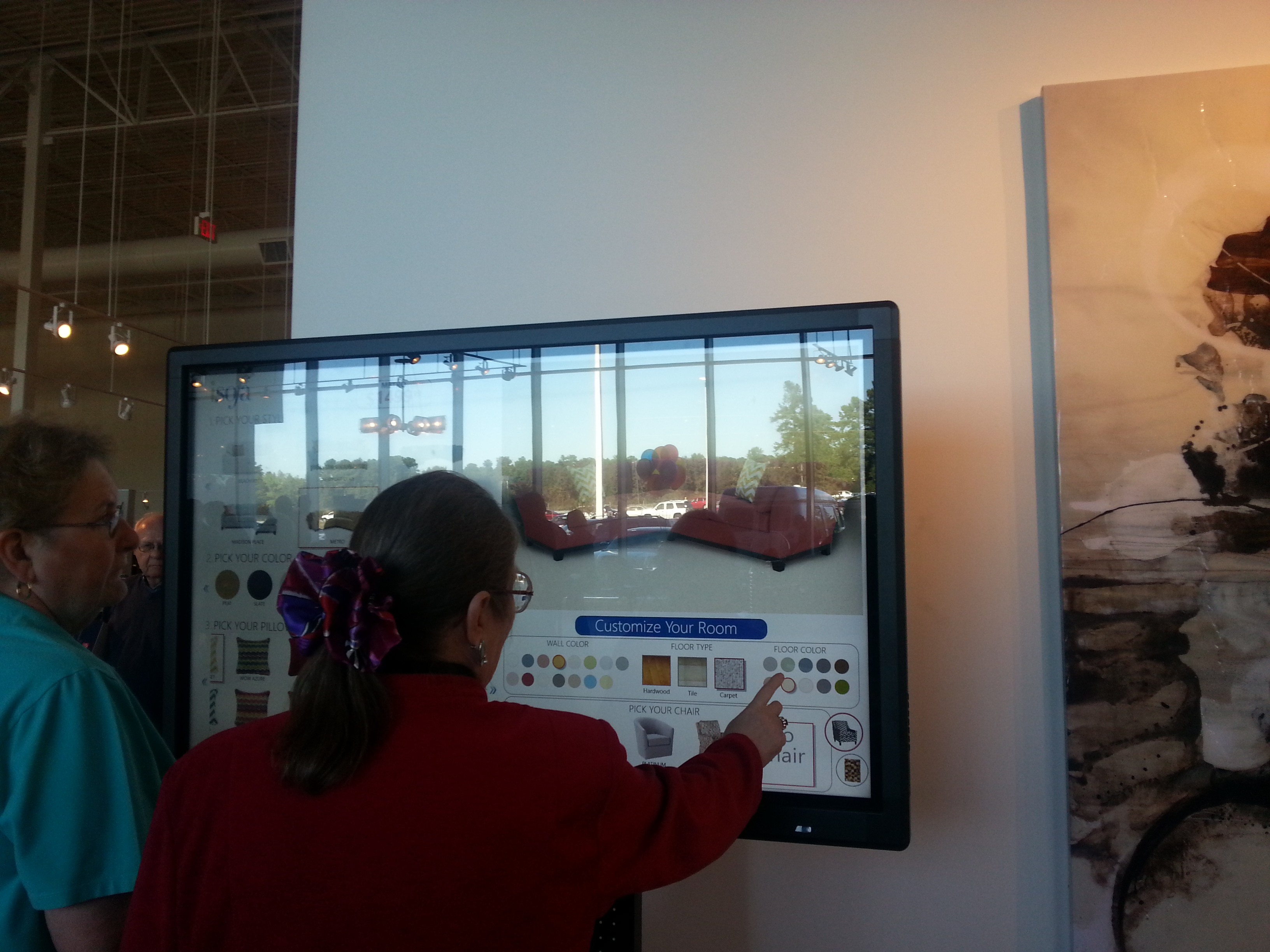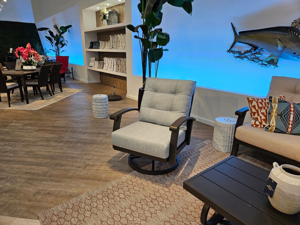 After talking with Andre, I walked around the floor, took a few pictures, and saw a few things that were of interest (Although at my age, what do I really need to buy?). Played with some lights that might be good for reading. Looked at an interesting bookcase, a large multi-screened video display on a wall, and a couple of chairs, and an outdoor dining set. After a comfortable visit, I left.