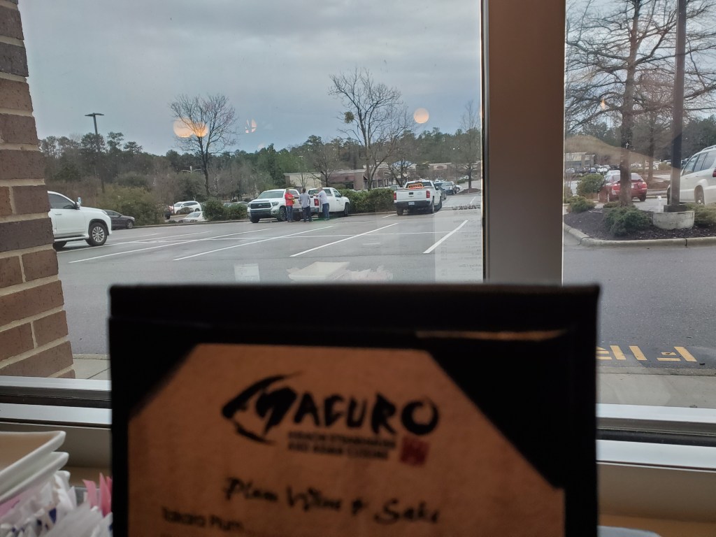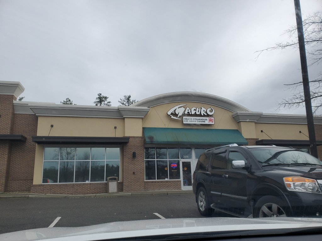 Next day, I decided to come back up to Southern Pines and to Maguro’s to try the Thai Basil Chicken lunch special. On the way up, it started to rain and very quickly the rain came down so hard that it was difficult to see. I would have pulled off the road if there was a spot, but the heavy rain was brief and I made it to the restaurant without further problem.