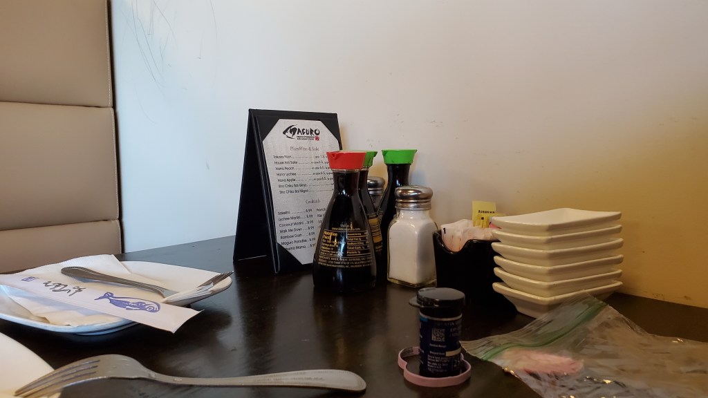 ADDENDUM [07/07/22]: I had lunch at Maguro’s again today. But, I only ate about half of the meal and got a “To Go” Box for the remainder. There was quite a bit of chicken left over, and a good amount of rice, but only one half of a small egg plant, a little of the Thai Basil, Bell Peppers, and onion. And, half of the spring roll. *I think of Maguro’s spring rolls as more of an egg roll. It has very good flavor.