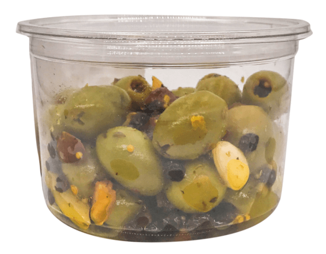 Pitted Green Olives, Water, Sugar, White Wine Vinegar, Sunflower Oil, Maracona Almonds (blanched), Cranberries, Black Raisins, Honey, Orange Rind, Lemon Rind, Mustard Seeds, Turmeric, Hot Pepper Flakes (Chilli), Thyme, Ground Black Pepper, Citric Acid.