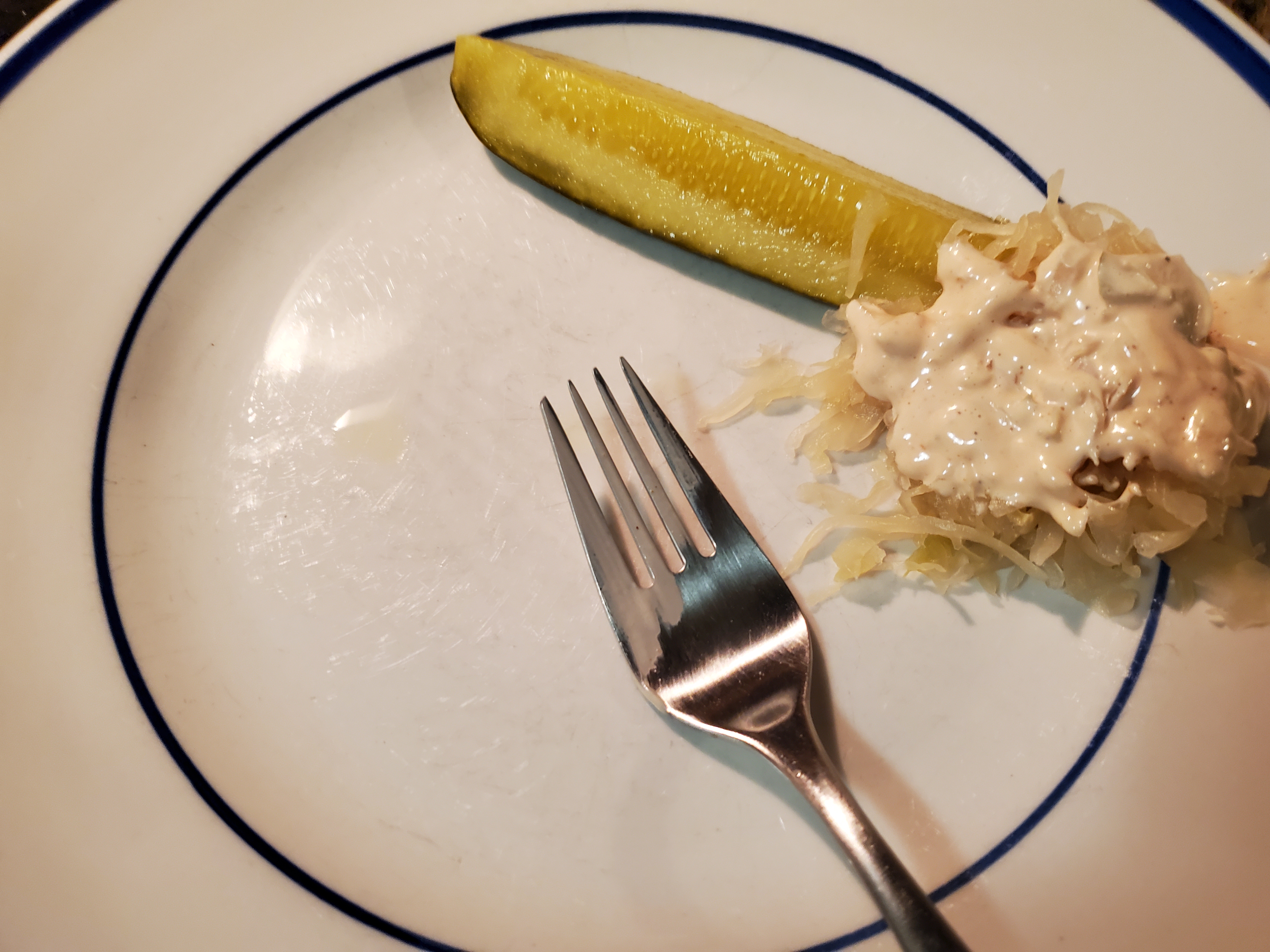 I got a half-loaf of sliced Seeded Rye Bread at Publix earlier this week, and have made a Pastrami Reuben sandwich for lunch the past two days. I have enough Pastrami & bread for two more sandwiches. I don’t eat Rye bread very often. In fact, about the only time I eat Seeded Rye bread is when I choose to make Pastrami Reubens at home. And, I enjoy all the flavors that come together for these. I have used the Wegman’s White American cheese instead of Baby Swiss. I make the Thousand Island dressing which is a simple 5 or 6 ingredient recipe that tastes better than store bought. I’ve also come to make a “side” of sauerkraut mixed with the Thousand Island dressing, and since those flavors work on the sandwich, they definitely work as a side dish. And that side would work with a pork chop too.