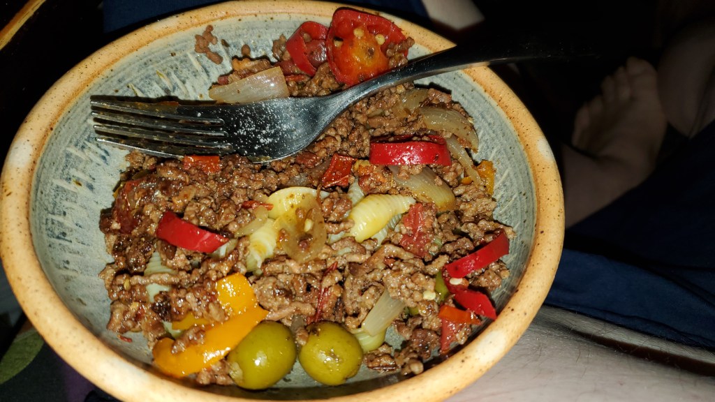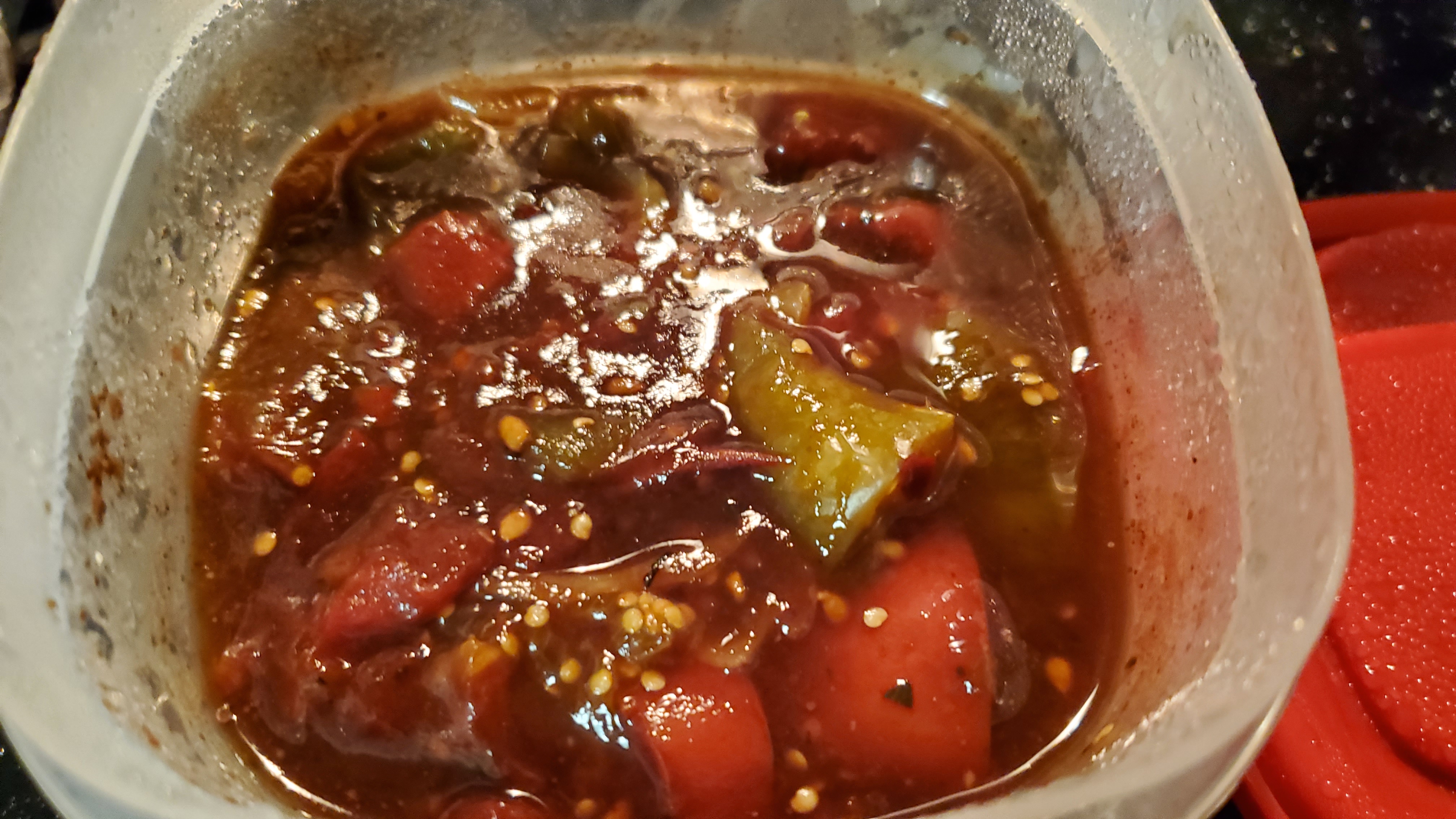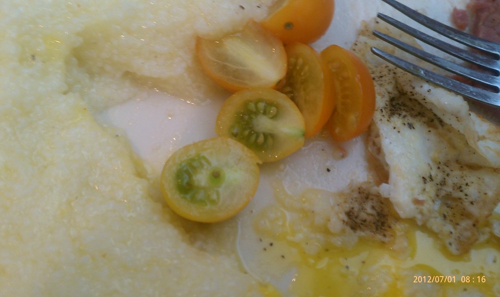 The photo of this salsa was taken while I was on a road trip. I recall driving down from Hickory to Lincolnton and stopping at various locations along the way looking for the few ingredients for this salsa. Definitely couldn’t find fresh mangos, but think I got Del Monte in a glass jar. I think I bought a couple of plastic bowls and cut up the ingredients with the knife in my utility tool. Stopped at a boat ramp for Lake Norman (some photos) and made and ate the salasa.