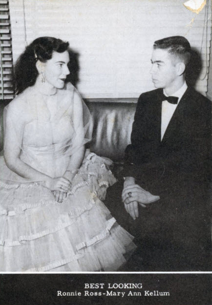 The co-Best Looking male, Ronnie Ross, taught me “drivers education” when it was time for me to learn to drive. I recall that I must have drifted over the center line once, and Mr. Ross said something to the effect that, “I’m going to have to beat you over the head with a wet noodle.” I remember the “wet noodle” part of what he said.