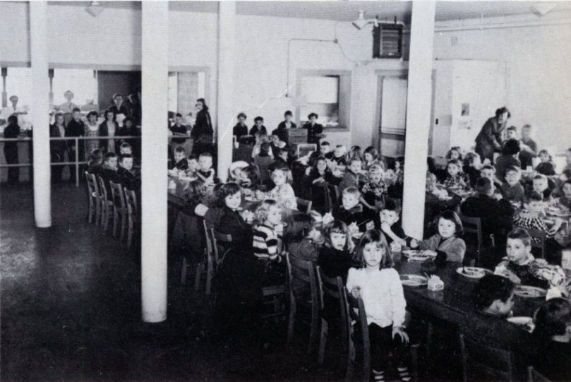The cafeteria above is where I learned, quickly, to hate sauerkraut. One day we had sauerkraut. I don’t see trays in the picture above, but we had trays for our plate of food and to put the Maola milk carton on. I would not normally do this, but on that day, I did not finish my milk (the carton was about half full). I also didn’t eat any sauerkraut. The little window about center top of this picture and next to a back door was where you brought your dirty dishes. That day there were a few teachers standing near this window. Well, I see that other boys have put their sauerkraut in their milk cartons, so this time I tried it. One of those teachers must have seen what I did because as I neared the window, she stopped me and lifted my milk carton. Feeling that it wasn’t empty, she told me to go back and finish my milk. I turned around and went back to try and finish my milk. Needless to say, sauerkraut and milk don’t go well together. I tried, and gagged, and fortunately she did not stop me a second time. It took me years and years to learn to like sauerkraut. But, I do like it now, on a Pastrami Reuben (Rachel) on rye, with sauerkraut, Thousand Island dressing and Swiss cheese. The dressing “turns” the sauerkraut much as sugar would turn vinegar into a more pleasing taste.