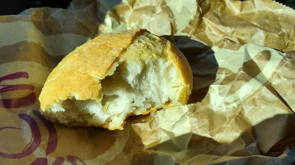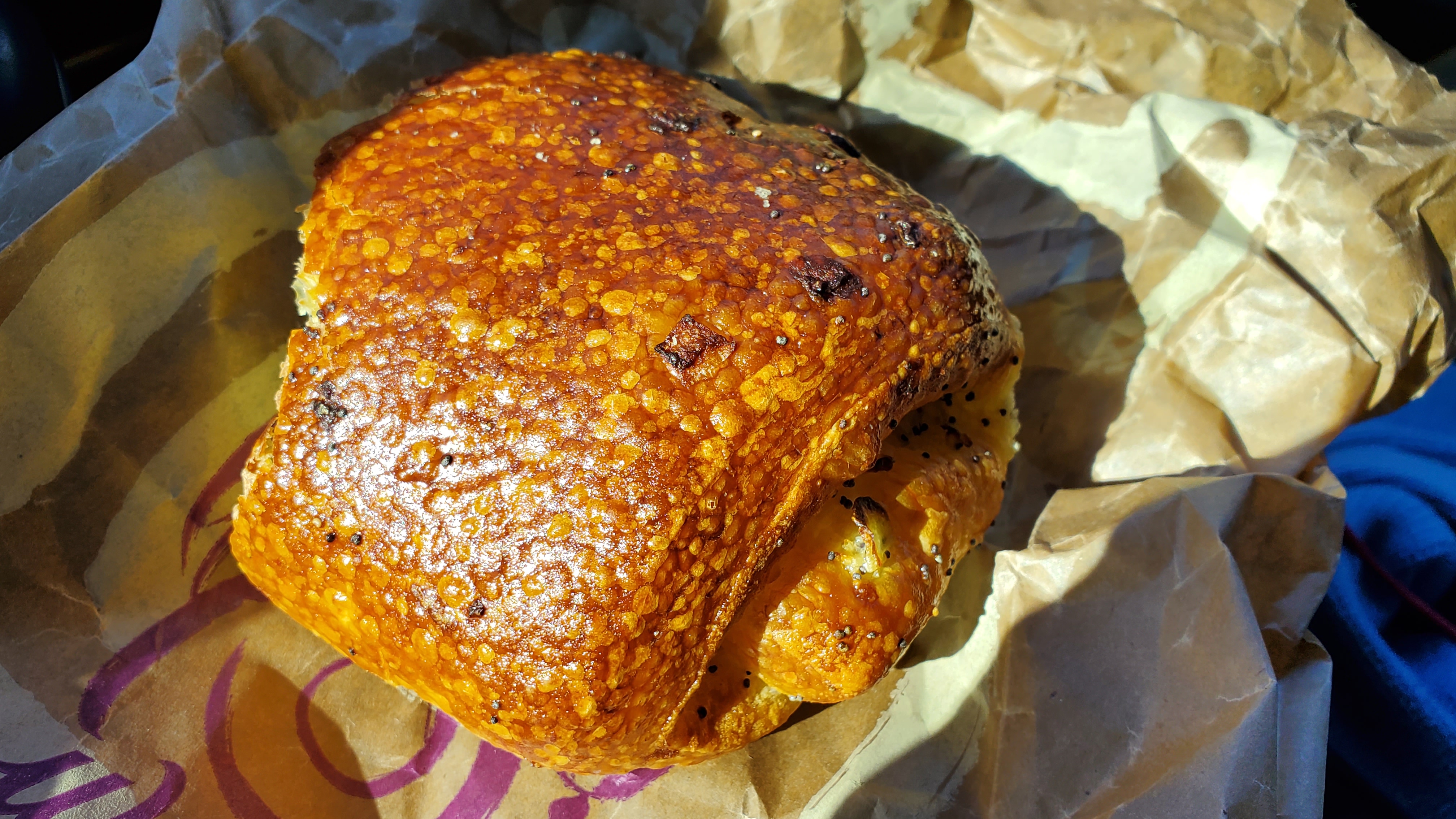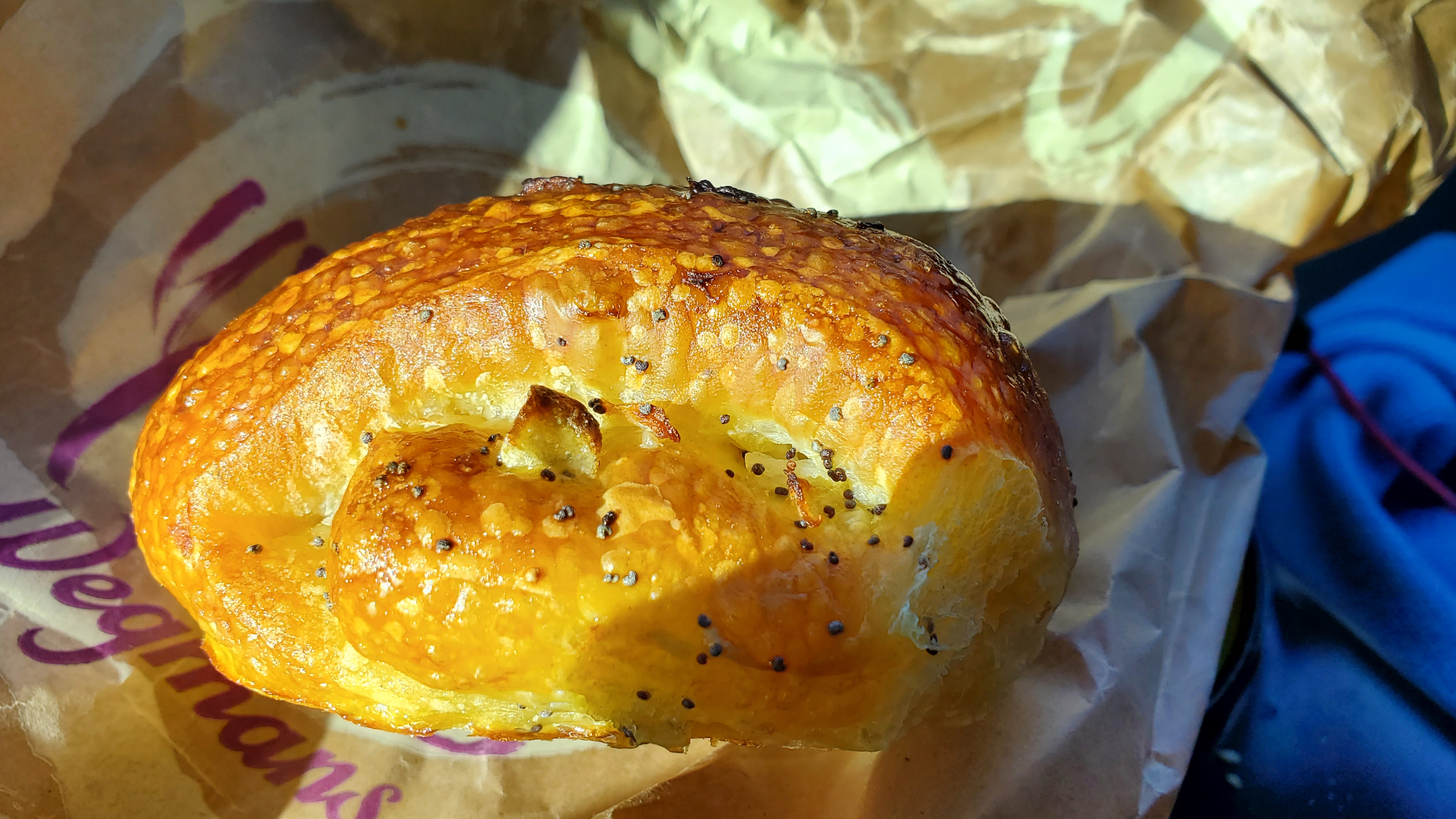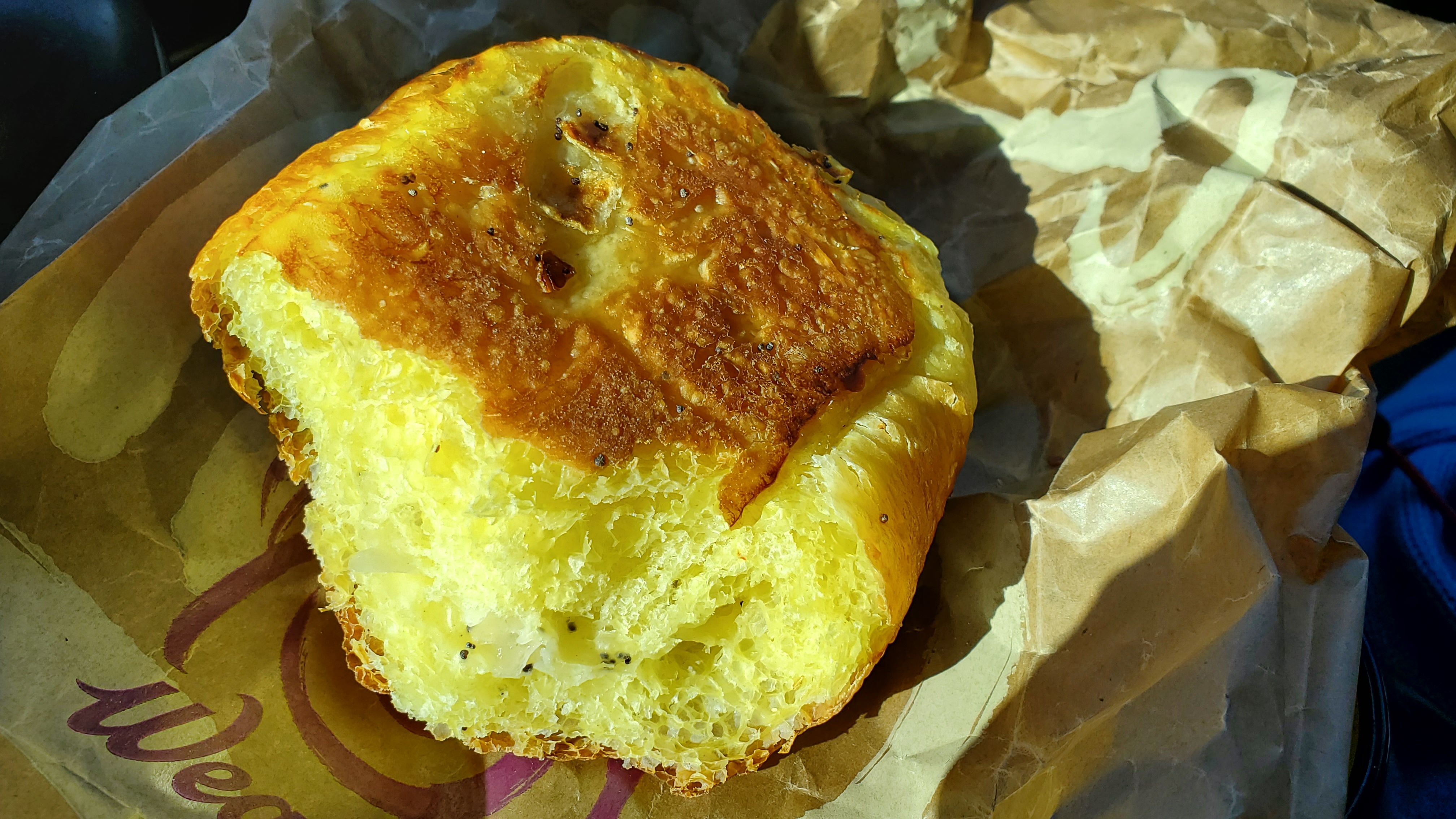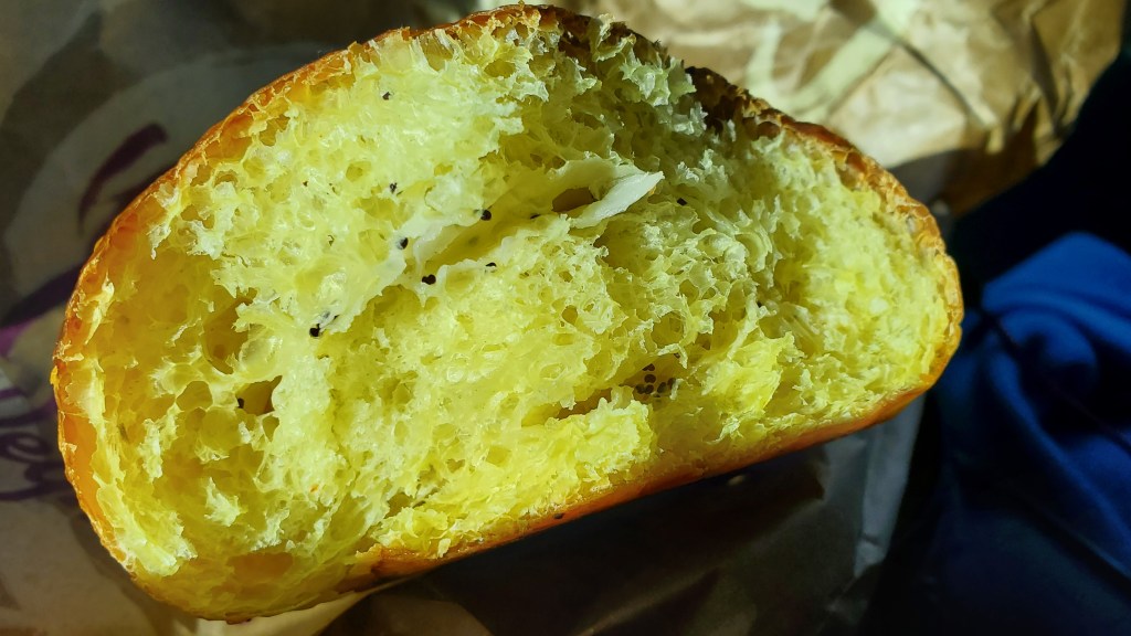 I turned to my left and headed through the bakery section. Almost immediately I noticed an assortment of rolls. One type that caught my eye was an Onion Roll. Note the beautiful crust above. And they were shiny. I went online to try and figure out what the other roll was, but don’t see it, or don’t recognize it. They were each $1 but I only bought two.