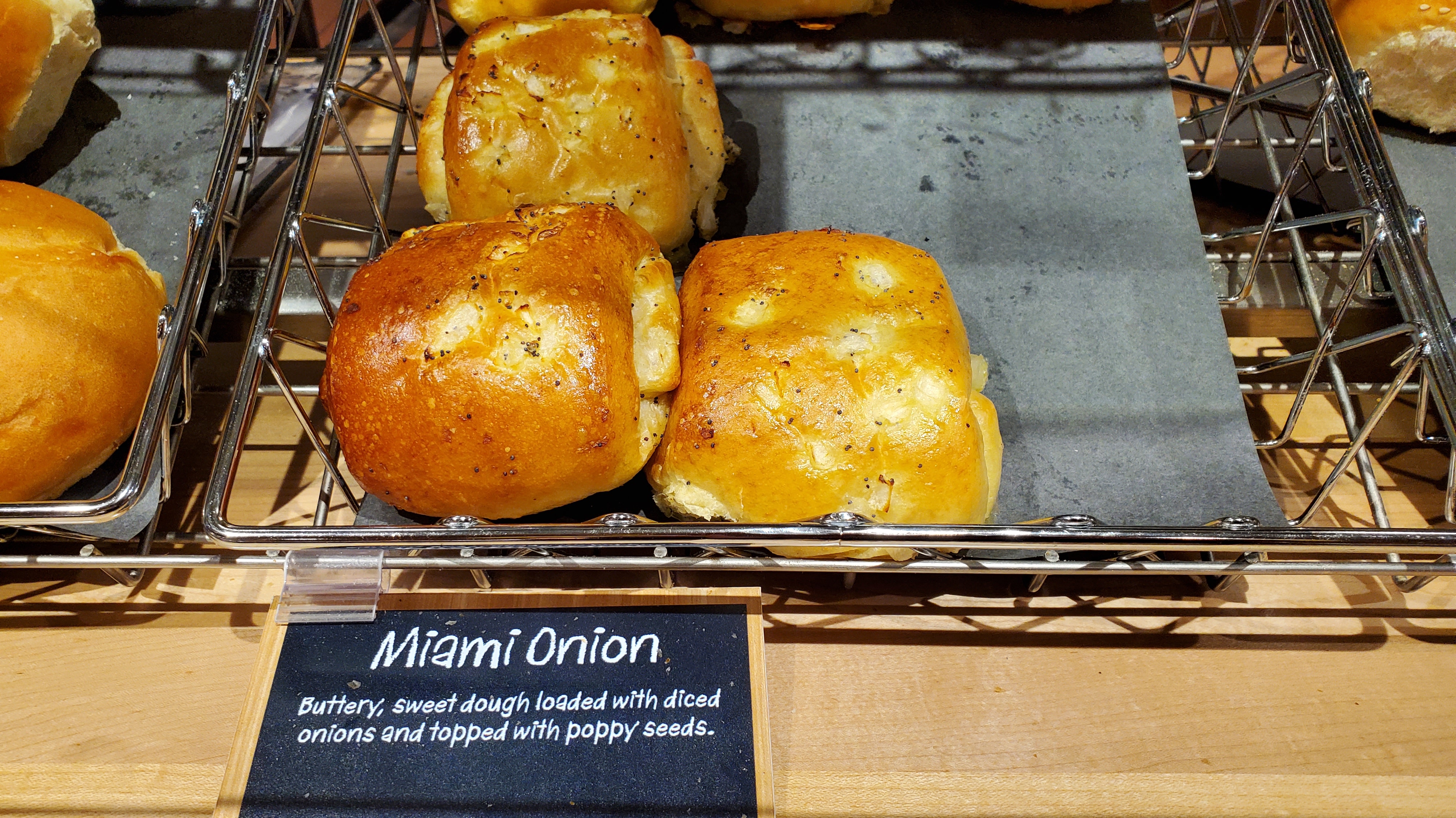 The Onion Roll that launched a thousand trips is on the bottom right of the image gallery shown above. The images at the top were taken about a week later. I was disappointed in the difference in the way the rolls looked on my second trip. They looked anemic, although maybe the first roll I had would be considered overdone.