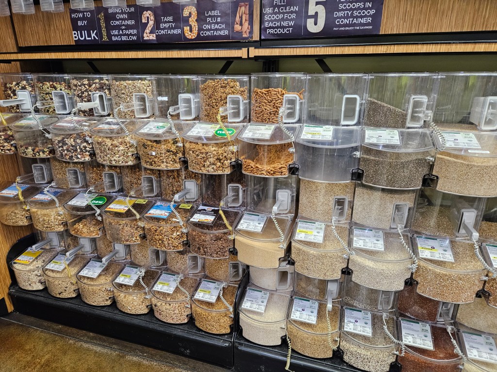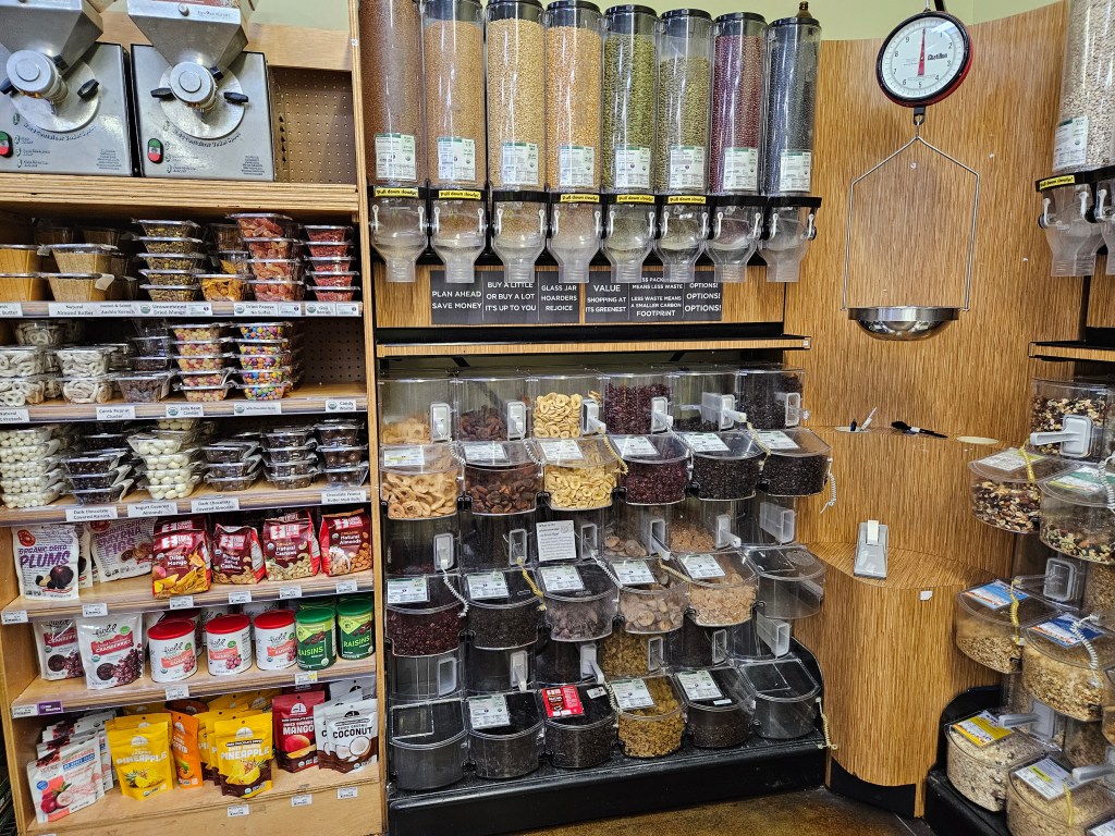 I took my yellow shopping bag in with me. I was impressed immediately with the way the fruits and veggies were displayed (different, but noticeable care like Wegman’s). Shortly I found a spice section and ended up weighing out some Fenugreek powder, Horehound Herb and around the corner was some coffee and assorted tea, and I bagged some Assam loose leaf tea.