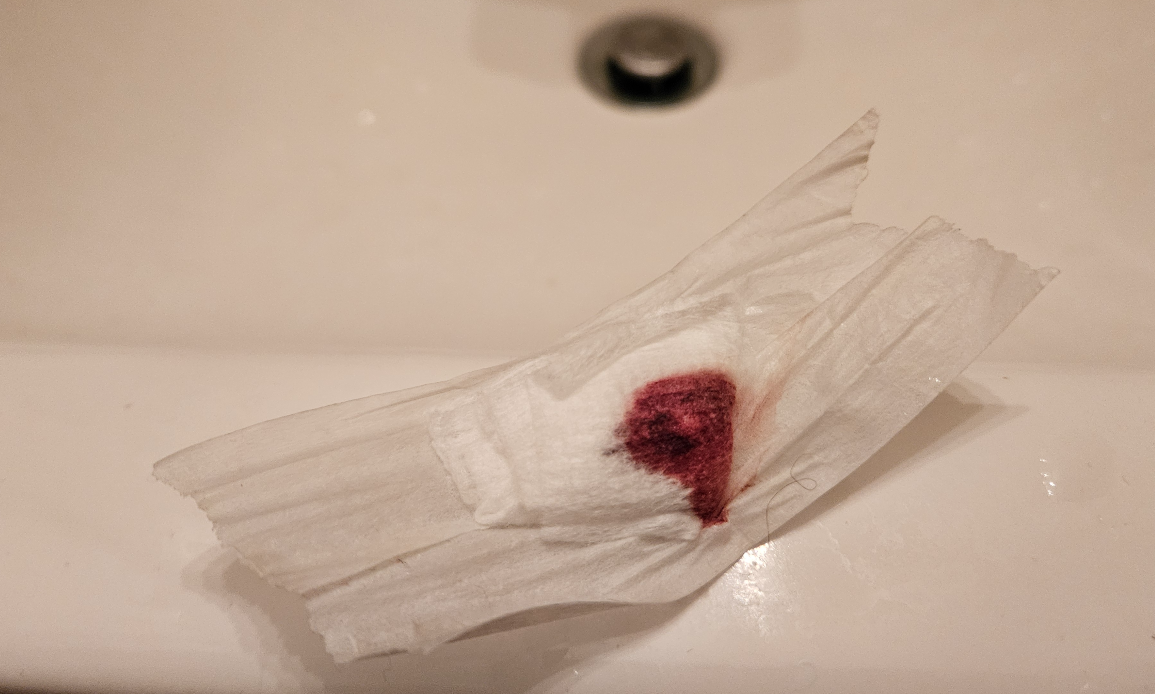 I’m not sure if the extra blood on this bandage was caused by the drink or some other cause, but normally I may have just a drop of blood after having blood work, and nothing like what is shown here. The technician didn’t hurt me, and I even joked to her that she didn’t “fail,” which was a reference to a reminder, written in large letters on a whiteboard in their office about learning from failures.