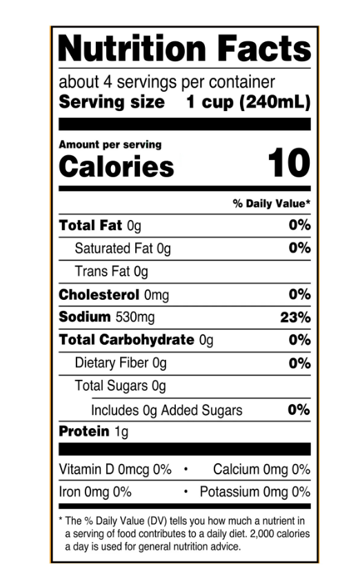 - 530 mg sodium ≈ 0.23 teaspoons of table salt (a little less than ¼ teaspoon).