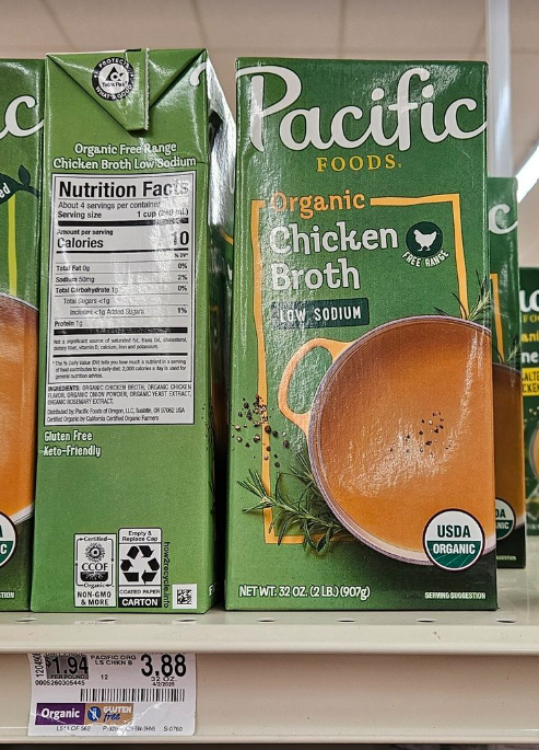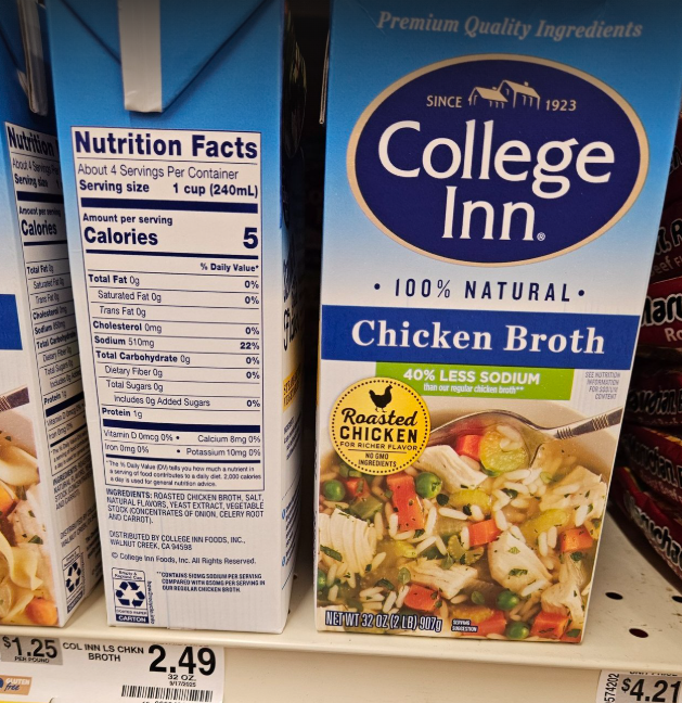 I’ve been more attentive to the amount of sodium in the various foods I’ve been eating lately. Now I have become aware that the Walmart GV brand of Chicken Stock I’ve been using has a very high amount of sodium 900 mg?! And you’ve got to read the labels even for “Reduced Sodium” options. Some of that may have as much as 570 mg of sodium, at that’s supposed to be low sodium. But, there is “Unsalted Broth” which has less than 100 mg of sodium for either beef or chicken broth. *So the key word is “unsalted” and not “reduced sodium.” And not too long ago the price of the GV brand 32 oz. of broth increased from about $1.35 up to $1.50. *I bought 3 – 32 oz. cartons of GV Unsalted Chicken Broth today (09/28/25) at the Walmart near Cracker Barrel. It was hidden behind other boxes of broth, and I had found none at the Walmart on Ramsey Street, nearest my apartment.