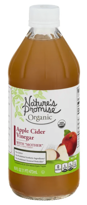 - Unpasteurized vinegar with “mother” – Bragg apple cider vinegar or any live, raw vinegar will do.