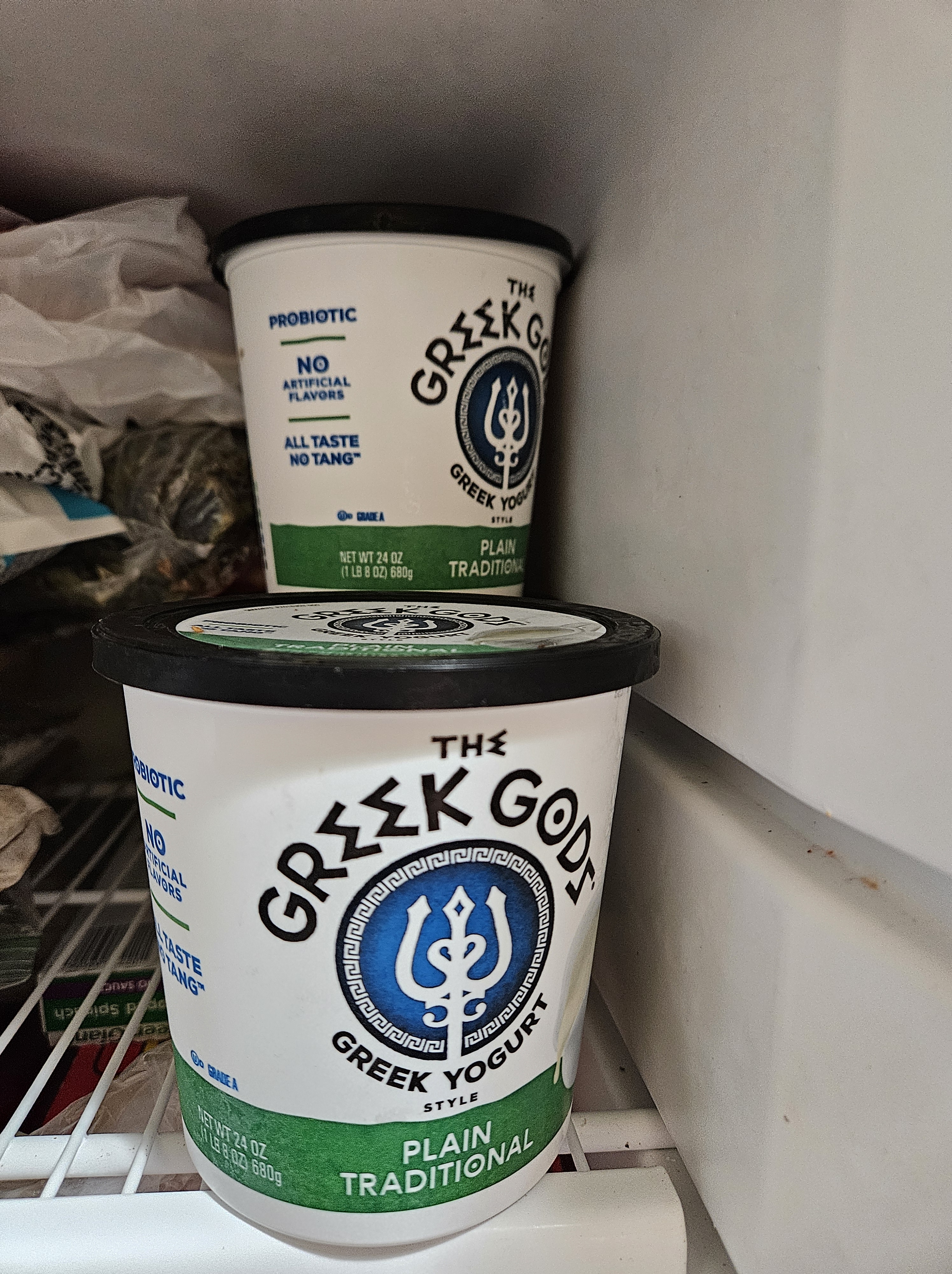 But also, I took the frozen veggies that I had stored to make homemade chicken broth, out of the freezer and put them into some water, along with the leftover carcass of rotisserie chicken, into my large stock pot. I added a few herbs & spices (garlic powder, bay leaf, S&P) and let them cook on low for about an hour and a half. I’ve removed most of the non-broth items and am letting it cool down before straining the broth and putting it in my empty “Greek Gods Plain Yogurt” containers. I can get about 3 or 4 helpings of broth out of each container and they fit easily in my freezer. I think I’ll have about four of these containers when I’m finished. *No, I ended up with six of the yogurt containers and still am trying to find space for the last two in my freezer. I’ve also got enough broth left over to fix some lima beans tonight.