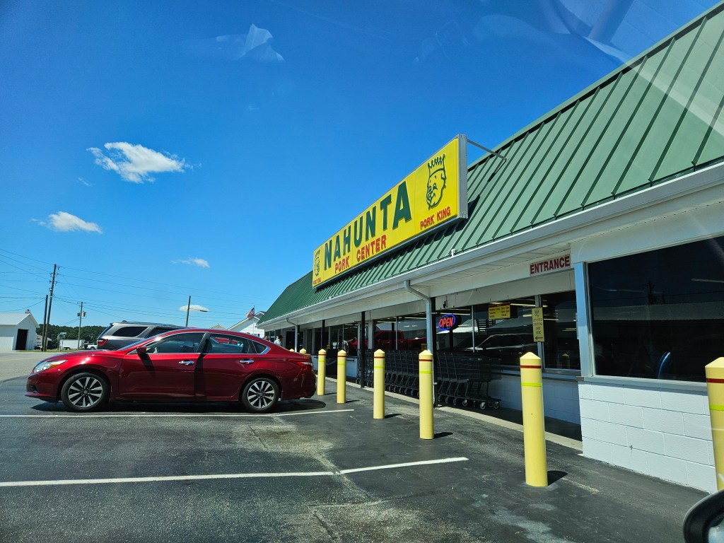 I then headed to Goldsboro, but made a detour to drive through Princeton and then out to the Nahunta Pork Center. I had never been to this butcher shop, but had seen it advertised for years, and it is out in the wide open farmland, but there were quite a few cars, both in front of the shop, and off in a parking area that I took to be for employees, of which there were quite a few staff both packaging items and waiting on customers. Since this is Memorial Day weekend, I’d imagine the Center is full of BBQ items for all the “get togethers” that people will be having with their families and friends. *I almost forgot. Near the head of a long counter stocked with assorted pork products, there was a whole hogs head, frozen and staring face up at you. And, I don’t recall the exact price, but it seemed very reasonable, if you ever needed a whole hogs head for some purpose.