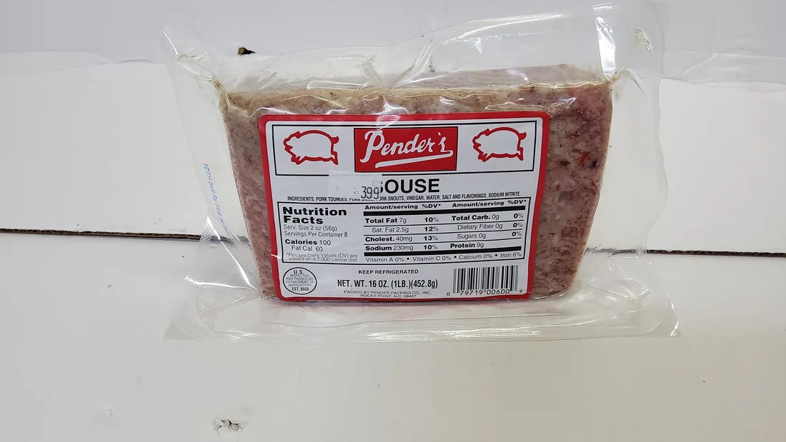As I handed the package to the clerk she asked if I wanted a second package for $1 and after a micro-thought I said “Yes.” I hesitated because I already knew I couldn’t keep the one package cool for the drive back, and was planning to stop for lunch in Goldsboro & maybe even the Library. so two packages of souse would be even more of a problem.