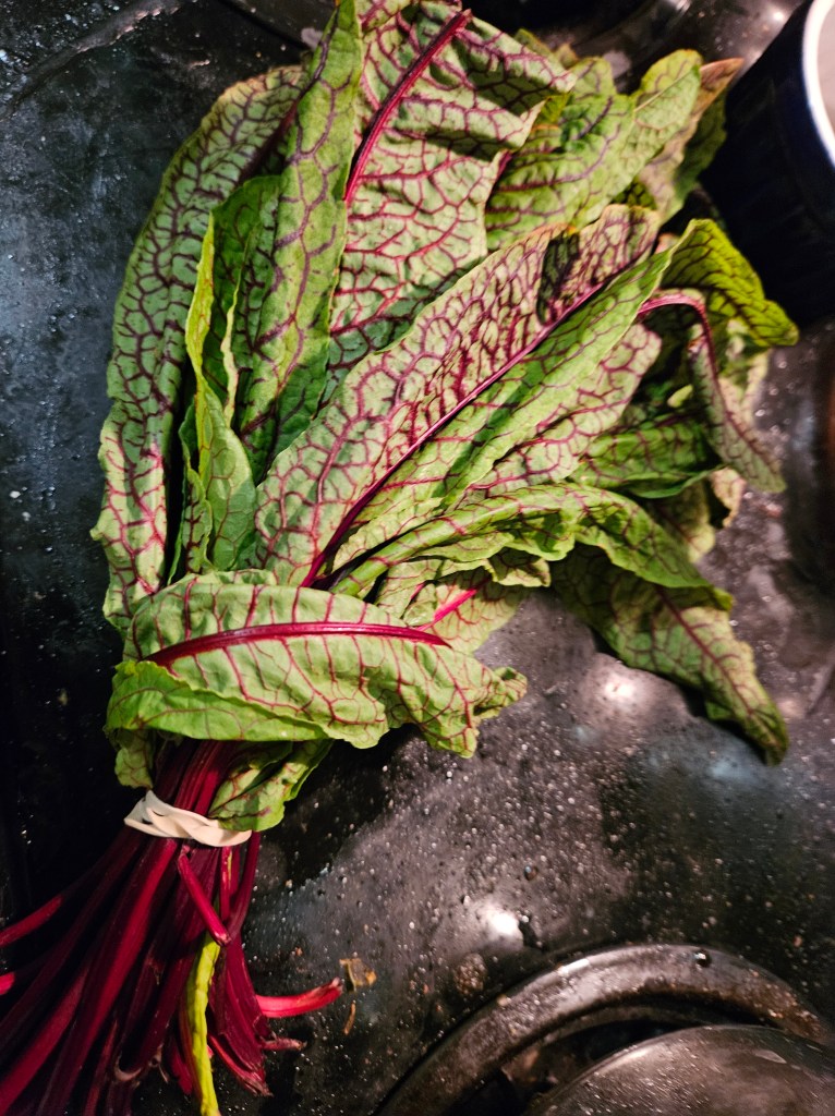 Not this time, but in the past I’ve seen and bought some really good looking Red Swiss Chard and put it into a soup or cooked it up with some Borlotti/Cranberry/Roman beans. Some grocers have even labeled it as “Ruby Chard,” which I think is more poetic.