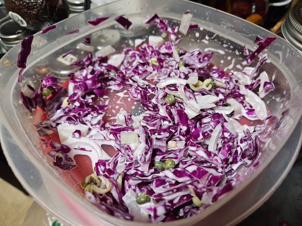 - Red Cabbage Slaw w/ Mung bean sprouts