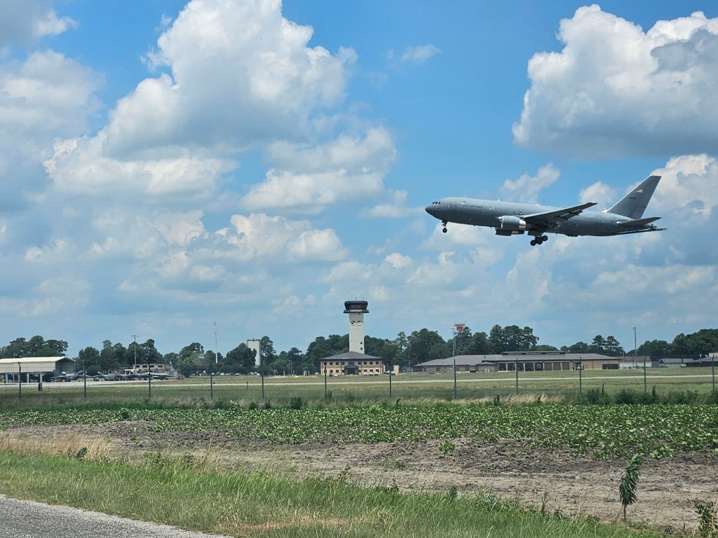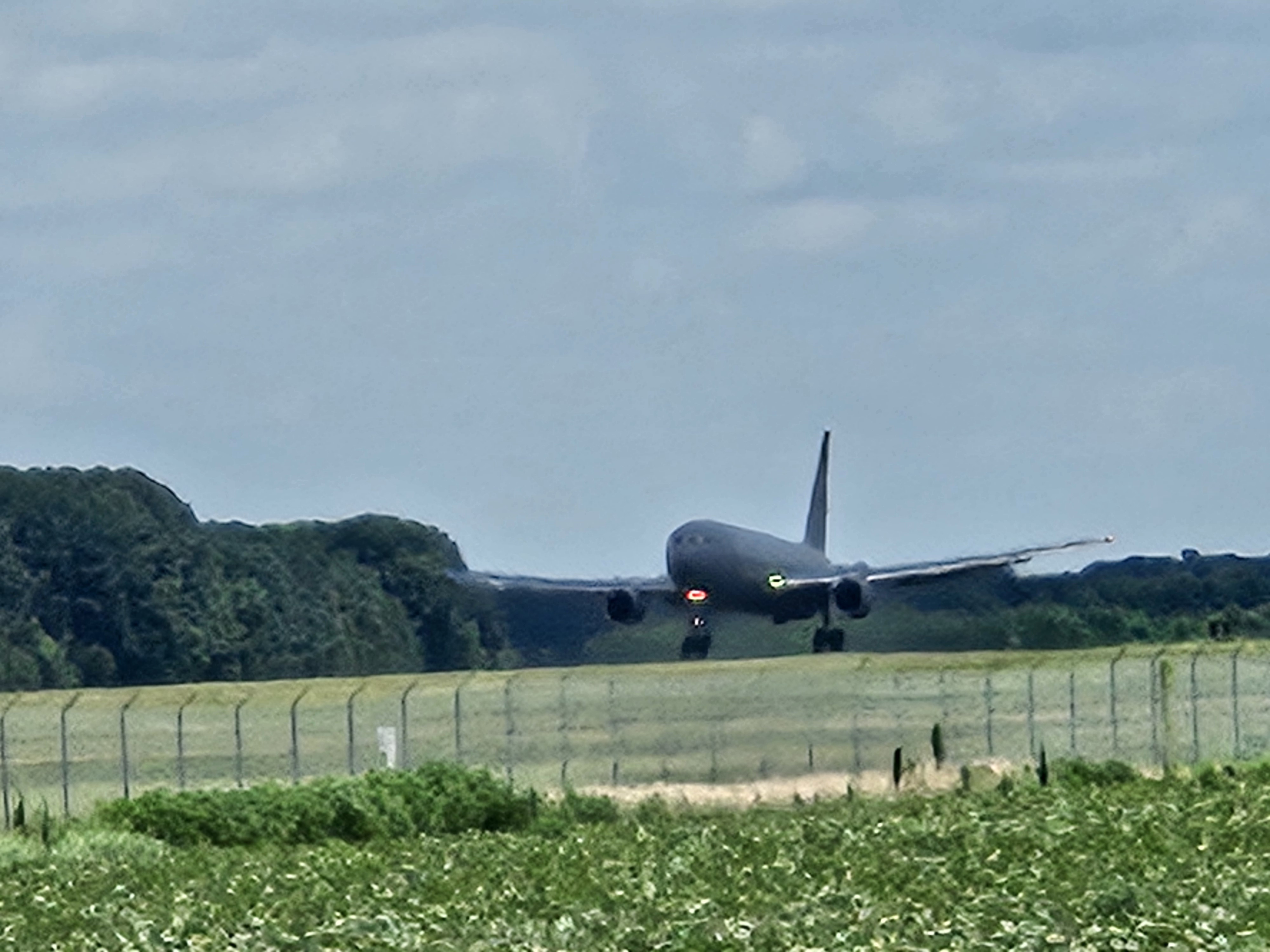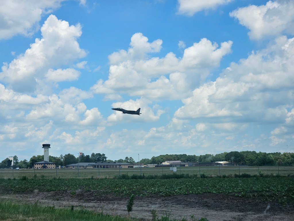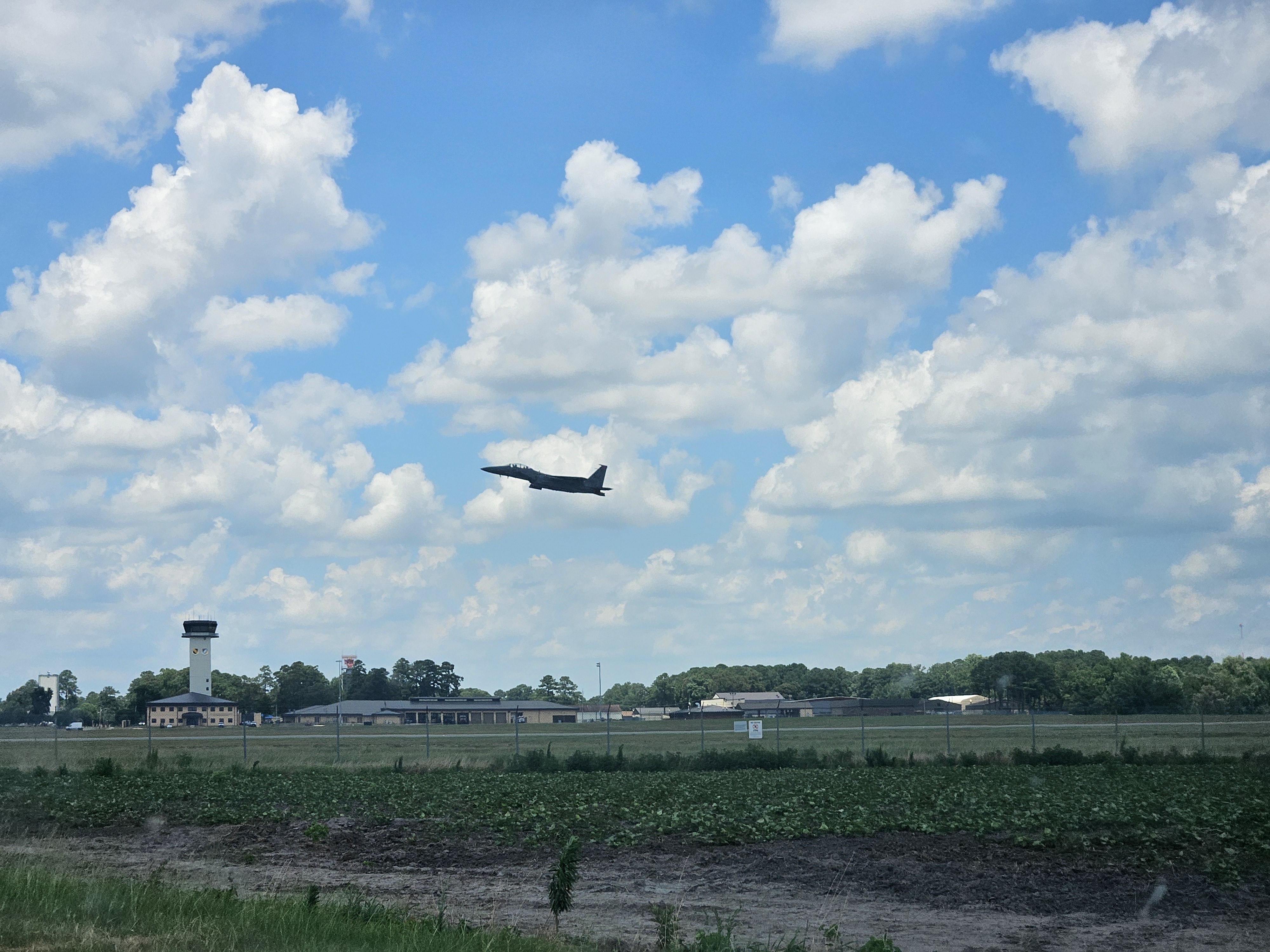 After lunch, I drove over to the SJAB air field to see if any planes were taking off or landing and they were. There were a few other people stopped along this “dead end” farm road. Depending upon the time of year, and the crops that are being grown, you can either see all the activity, or the tall corn will block your view.