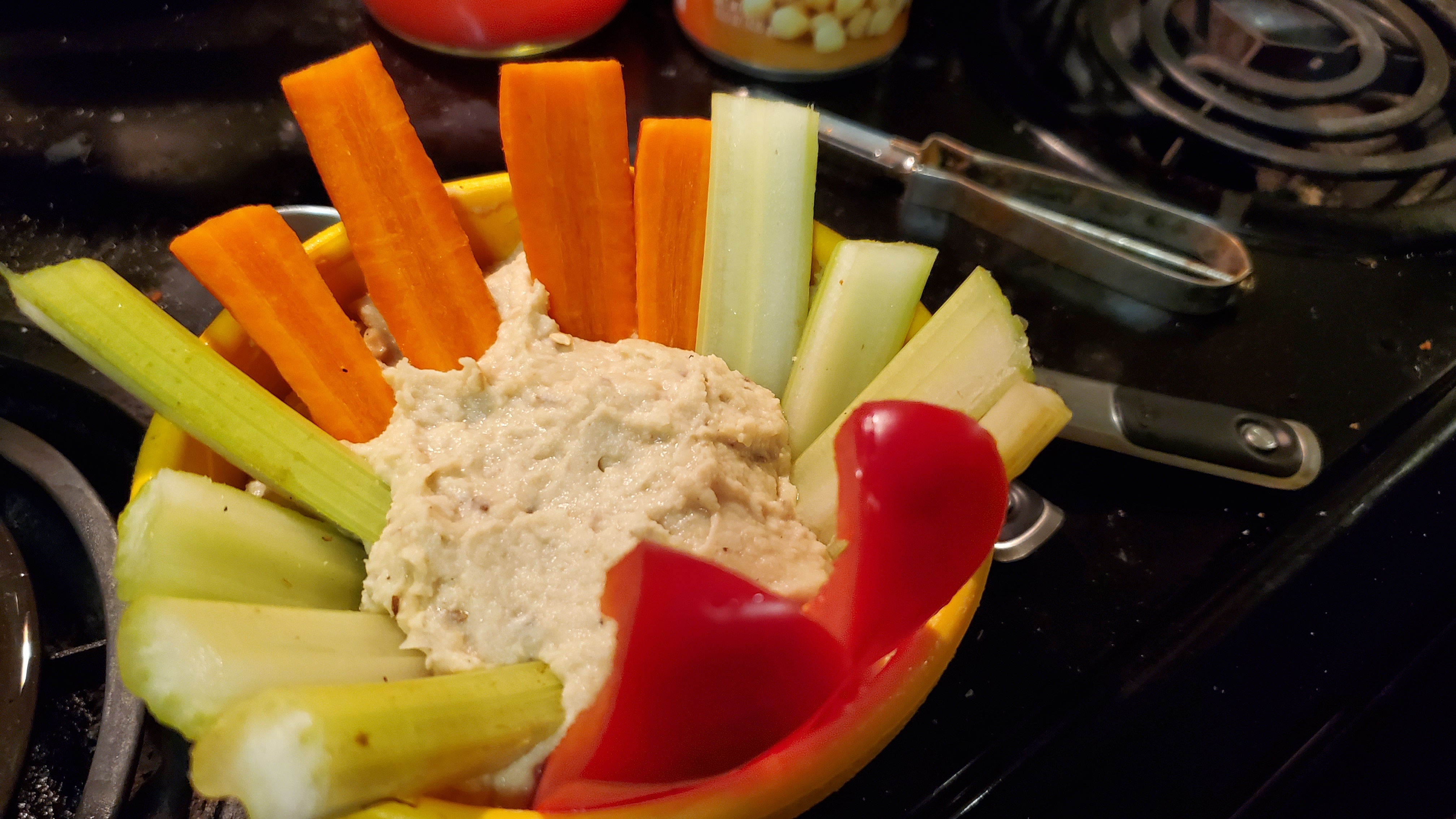 I bought the MultiQuick tool for the stick blender, but the chopper bowl became more important because I was able to make hummus, and I was able to blend salsa. *If I were sending a child, especially a young man off to college, I would send this chopper along with him. Why? He could become a “hub of activity” by working out a deal with his other suite/dorm mates. I’ll provide the hummus (a few cans of garbanzo beans) and you provide all the veggies we eat. Someone brings carrots, and celery. Someone brings some chopped onion and tomatoes. You get the idea. Everyone to the “feeding trough” and fed boys are happy boys (for the most part).
