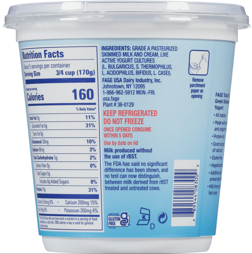 - FAGE Total All Natural Whole Milk Plain Greek Strained Yogurt (Walmart, Harris Teeter)