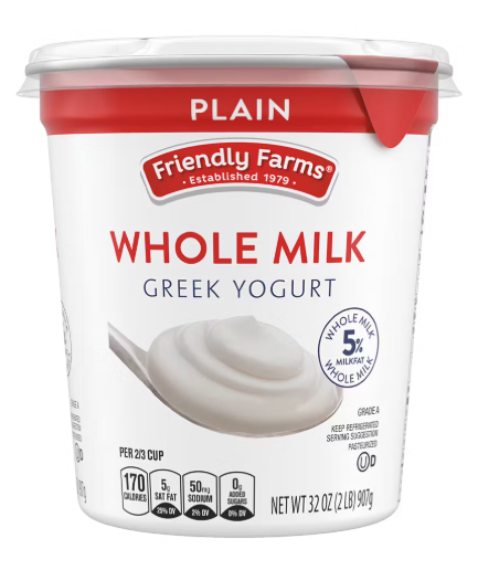- Friendly Farms Whole Milk Greek Yogurt (Aldi’s)