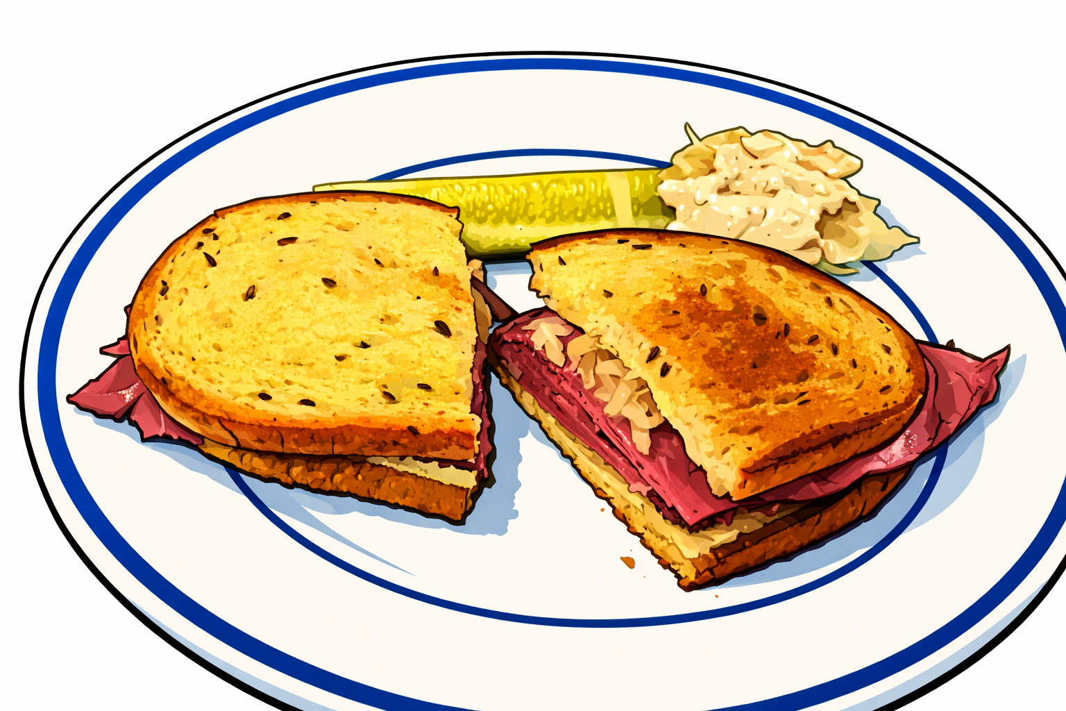 I have a honed process which works to the letter and t. I first butter one side of each slice of rye bread and toast that side in the oven. I then turn it over and put either Swiss or White American (Wegmans preferably) and toast that. I then add a layer of deli pastrami on top of the melted cheese and finally add sauerkraut and mix some Thousand Island Dressing with it. This keeps the “wet” items from getting to the bread and making it soggy. I slice the sandwich in half and it stays surprisingly neat.