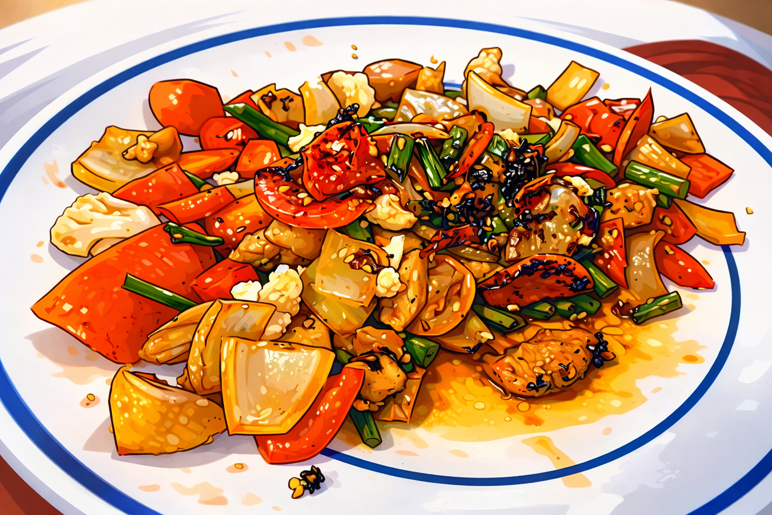 Besides using chicken or shrimp, and an assortment of veggies like onion, bell pepper and carrots, I like to add when available sugar snap or snow peas and about half a can of “Stir Fry Vegetables.” I also like to add pineapple and a little Agave Nectar for sweetness.