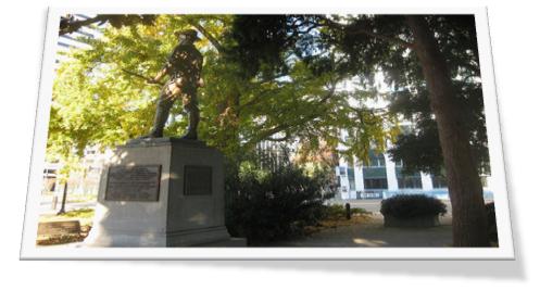 The next morning, when I awoke about 6:30am, rain was coming in brief waves and rain drops bouncing in puddles on the parking lot and vehicles below. I showered, and went downstairs for breakfast. I had a large Belgian waffle, some syrup, a glass of cranberry juice, and later, some milk, and some coffee before heading out on tour. It was still raining when I left the hotel and quickly found a gas station where I filled up my tank. I then took the Hanes Mall (road or parkway) path and came to Silas Creek Parkway. I now know that I turned in the opposite direction from which I should. Eventually, I would use my GPS to get back on track, and crisscrossing roads, would find Reynolda Road, and take a brief tour of the Wake Forest University campus on a rainy, early morning.