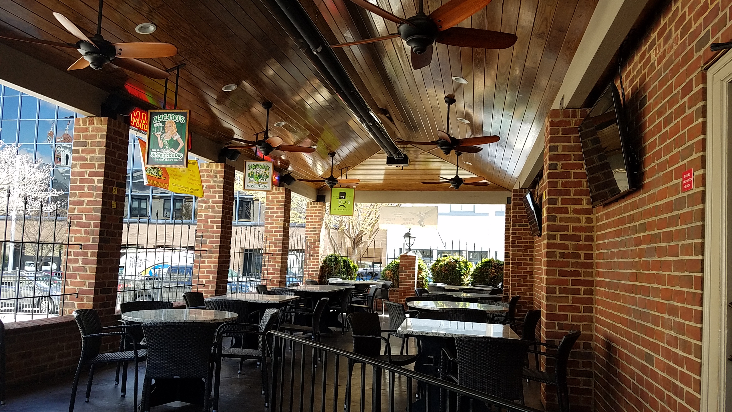 Macado’s parking lot, between the restaurant & Roanoke CollegePatio areaNew window looking out on patio.Rough cut fries, not crinkle cut, like these.