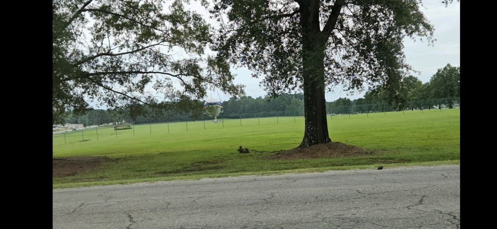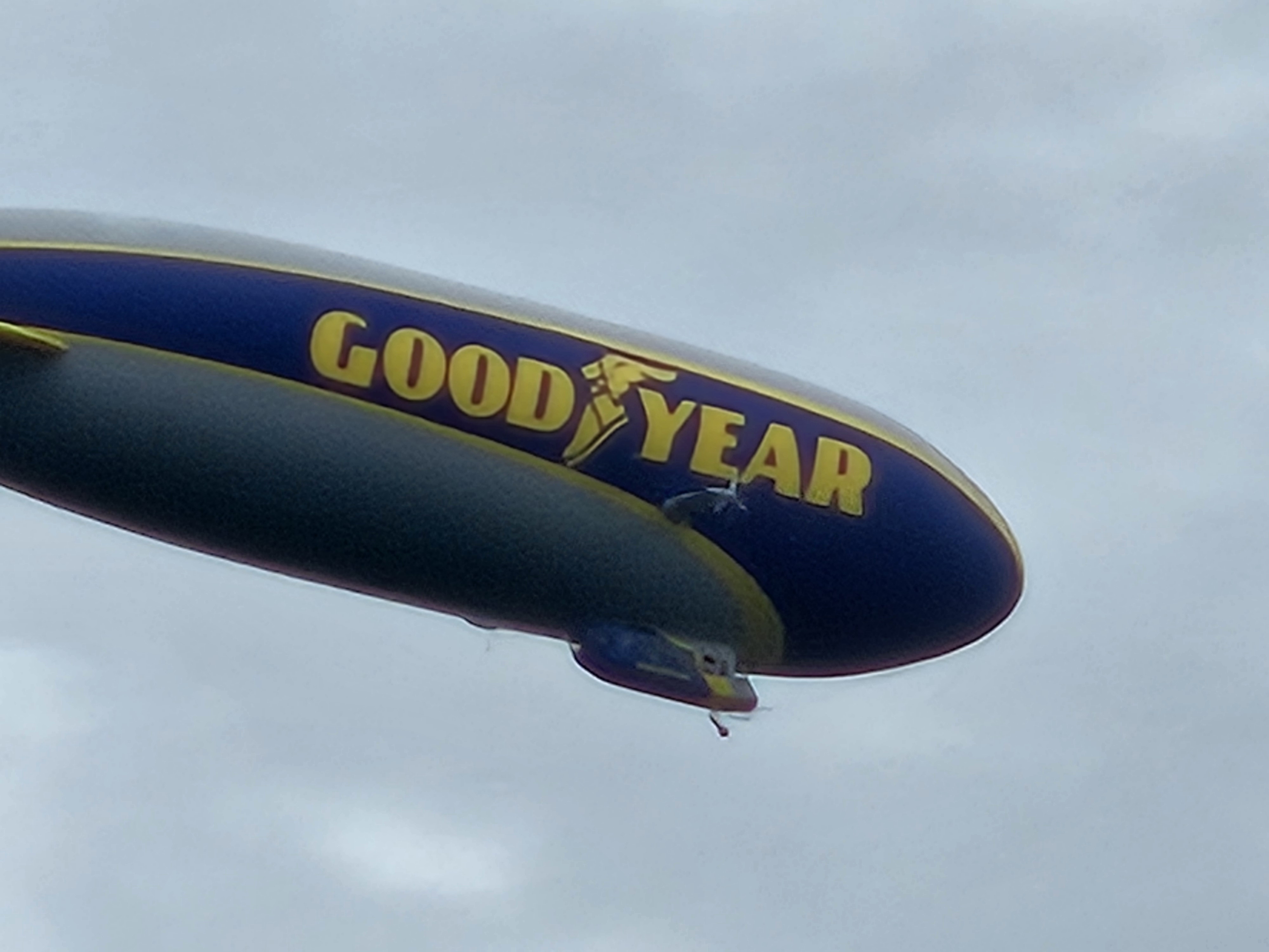 As I was turning out of McCloskey I looked back and saw part of the Goodyear Blimp down in front of the Goodyear Plant. I had seen a small one sometime in the past few years down there. When I came out of Walmart, I looked up and saw the Goodyear Blimp. It headed toward downtown, but I headed elsewhere. But as I was coming back after lunch on Ramsey here the Goodyear Blimp passed me and was heading in a “bee line” for what I surmised was the Goodyear Plant. And it beat me there by about 30 seconds, so I didn’t get a good video of it arriving and tying up to it’s anchor in front of the Plant.