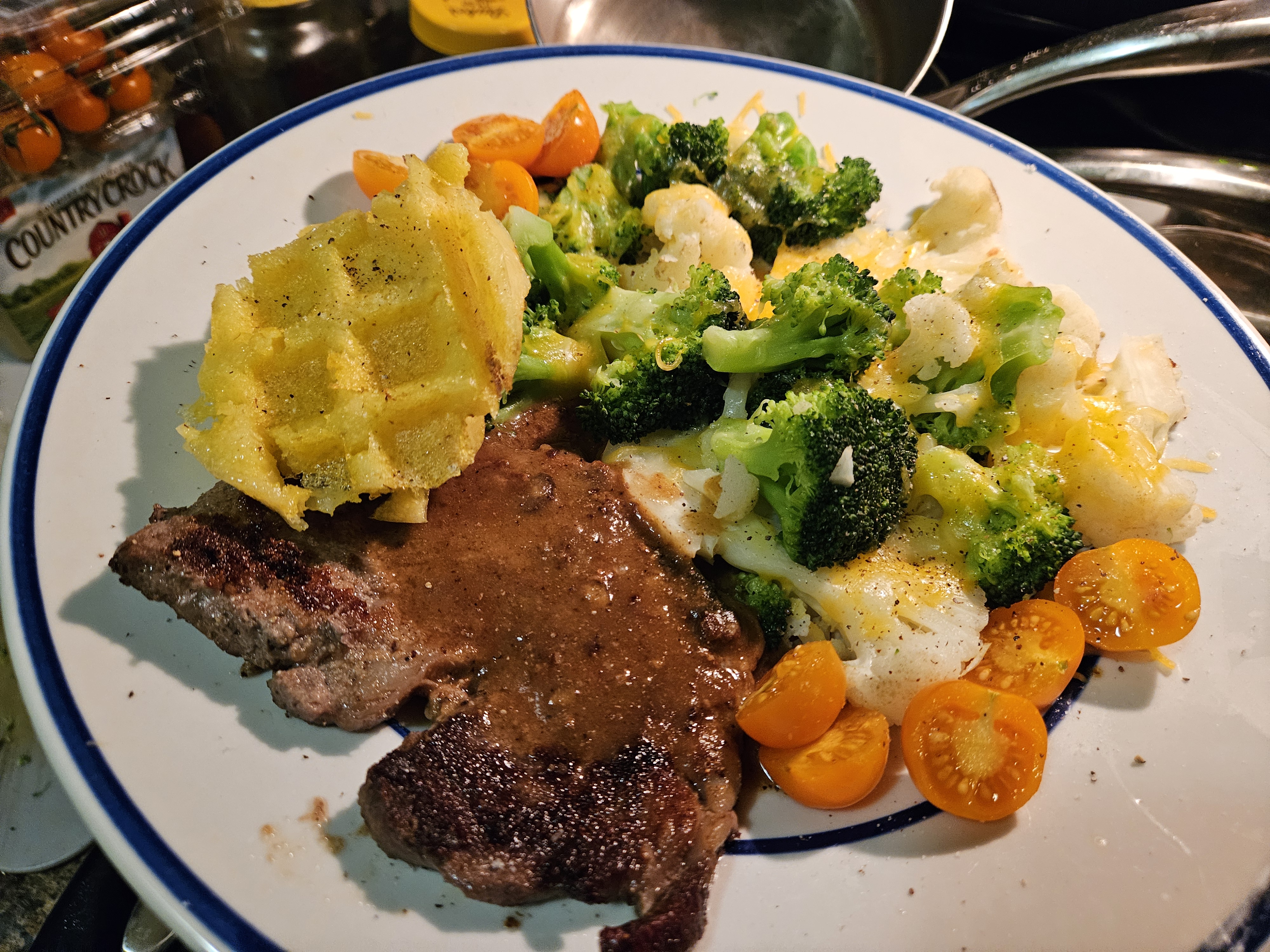 I cut the filet so that I could eat the part with the Smoked Paprika. I also baked a Russet potato in the microwave, and already had some cabbage slaw (mayo, red bell pepper, sweet onion, sweetener). This turned out better, and it is something that I would put in the rotation of the other things I cook. Not as regular as some of the other things I like, but definitely worth trying again. [end NOTE]