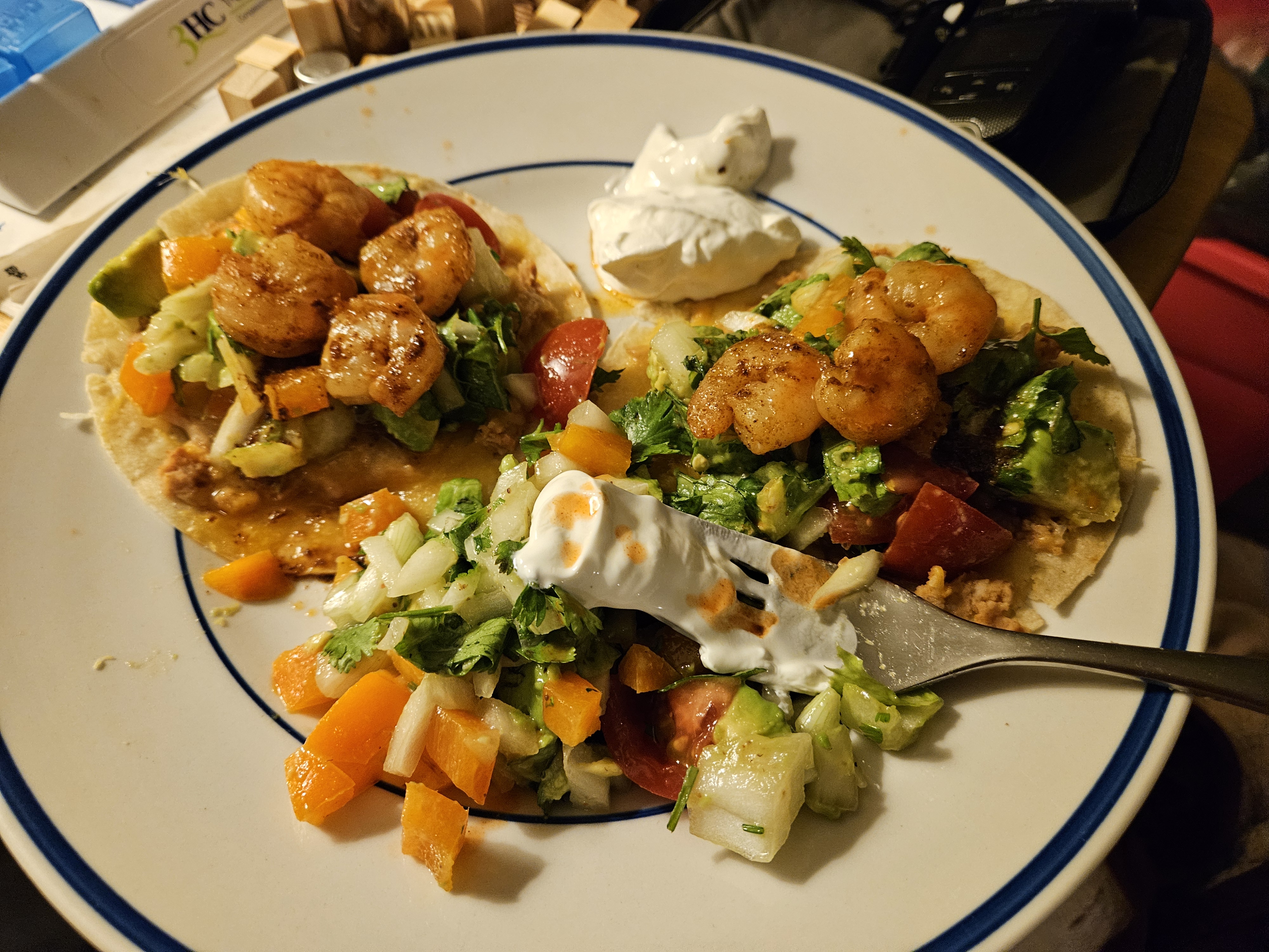 I had a little guacamole left from yesterday and find that with a few salty corn tortilla chips this is a decent side with various meals. It’s not just for Mexican anymore.