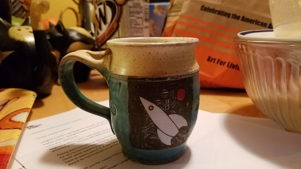I also enjoyed Asheville for “Trillium a Bistro” where I enjoyed “Curried Apple” soup, and alligator sausage, gravy and polenta. Not sure if I had ever tried polenta before that time. Trillium didn’t last that long, but I did end up making my version of the apple soup, which is pleasing, both hot and cold, and vegetarian or with chicken. I had a good experience at Dobra Tea where I enjoyed a pot of Assam Bhramaputra without any sugar or cream. I still have a couple of cakes of Pu-Erh tea that I bought there years ago. But, this tea is an acquired taste and something entirely different from the black teas I grew up with. I have visited the WNC Farmers Market in Asheville quite a few times. I first became aware of ramps on one of my early visits. But I also tried various cheeses from another vendor, and eventually tried three different beans from Cara’s Corner Market (also facebook). I wrote about my beans excursion. All three looked delicious in the pictures I took, but the truth was that all three fell short in taste. It made me realize that the popular beans, butter and black eyed peas, had proved “the survival of the fittest.” These less popular bean varieties had failed to be as good flavored as the more popular ones. I bought some “gumbo file” powder there, which I added to some soup and I enjoyed some clove hard candy, which I later found online and still have a good sized jar. I just don’t eat this candy because of the high sugar content, but I do like the flavor. I’ve enjoyed my visits to “New Morning Gallery” in Biltmore Village. I think I’ve bought at least a couple of pottery mugs or bowls there. I’ve enjoyed my visits to the “Southern Highland Craft Guild Center” and getting there from “the back way” along the Blue Ridge Parkway, from Weaverville. I think I may have bought my special “alien” mug there, but I’ve also bought mugs at Mangum Pottery.