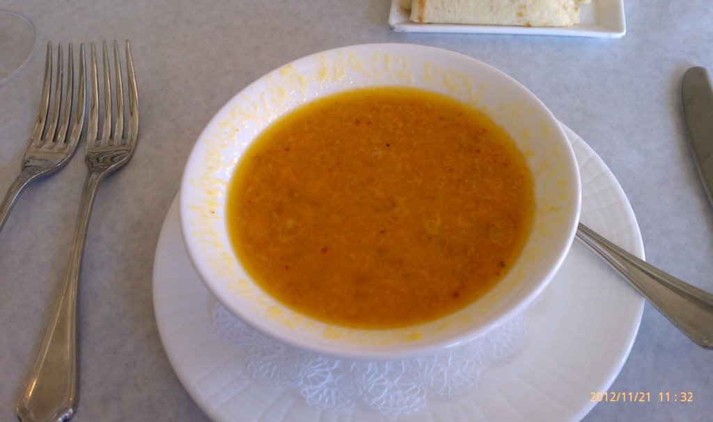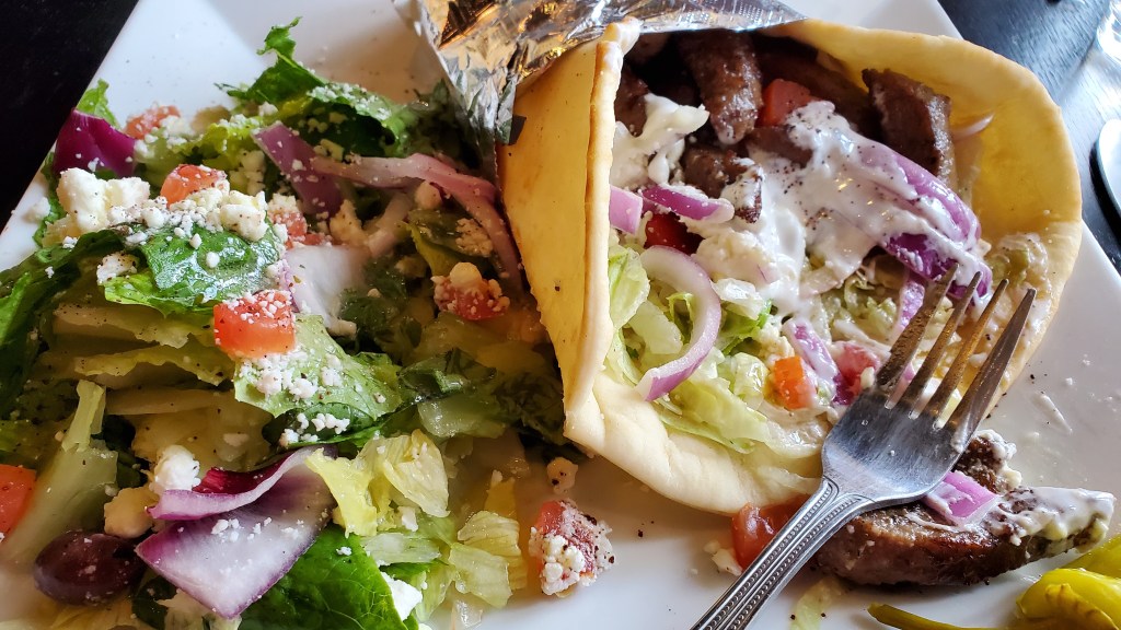 The salad wasn’t that special. I think it had Romaine lettuce and some anemic tomatoes and I don’t recall anything else in the salad but the sirloin strips. And I found this steak was a little tough to chew. Maybe if it had been cut into thinner strips the toughness would have been less noticeable. *And, I planned ahead and brought my own salad dressing (my Italian dressing mixed with a little of the Cilantro-Lime dressing I had made several weeks ago for my salmon excursion.) and I put a couple of Castelvetrano and a couple of Kalamata olives in the same bottle of dressing. I used a empty glass spice bottle to transport my salad dressing & olives. I ordered the steak salad without their dressings. Online I had seen that the Longhorn dressings (except for no dressing) to be high in calories and/or high in salt. My dressing & the olives made the salad palatable. The Shrimp & Lobster Chowder was okay. I still think that this bowl of soup has better flavor at the Goldsboro restaurant even if it comes from the same can as other Longhorn restaurants.