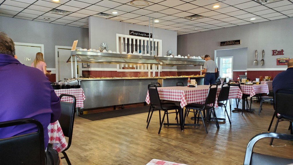NOTE: I’ve mentioned previously that I noted some pictures of “Black” persons adorning the walls of this Cracker Barrel and that this is a change from when I was growing up. This morning, as I was reading my book, sitting at my table, I turned and looked at the wall beside me. I laughed. There was a small picture of two little girls. But, not just two little girls, but two little black girls. Definitely a change, from the top down. [note]