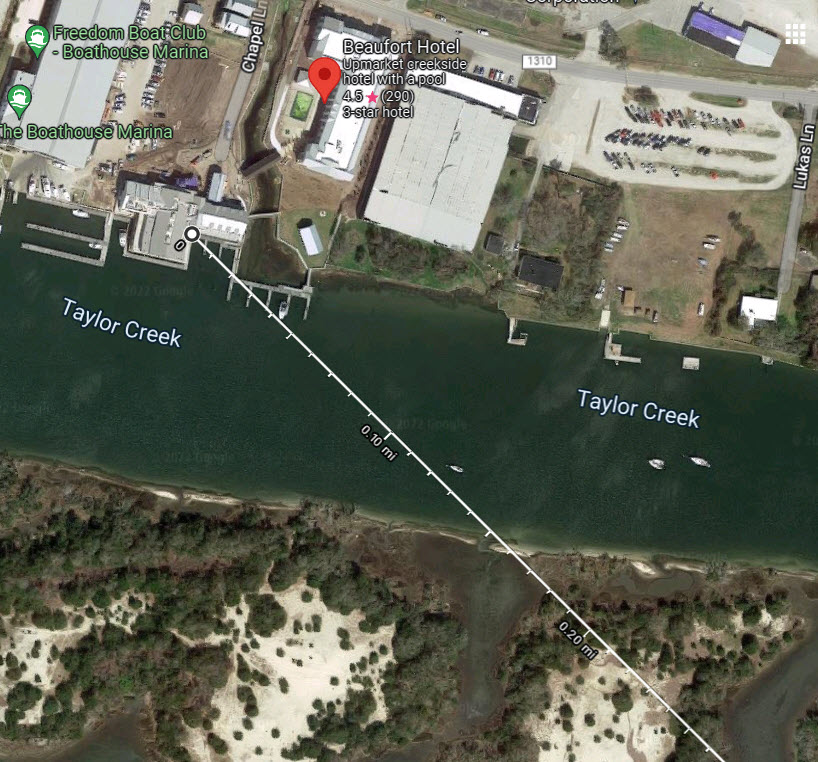 I sat in my “easy” chair rehearsing what I had just seen. Person upright, no visible vessel beneath them, moving incredibly fast, and producing almost no wake. I said to myself, “Surely someone might ask, ‘did you really see what you just thought you saw.'” I sat there another few minutes, and then I look at the view and here comes the person back in the opposite direction, disappearing to the right of the webcam view heading back toward the Beaufort, NC waterfront.