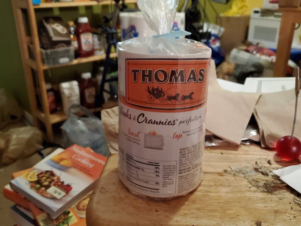Not sure why I started to fiddle with the packaging for my Thomas “The Original Nooks & Crannies English Muffins” but I think it was because I was looking to make it fit for storage a little easier. And that is probably not the complete reasoning, because the flat, rectangular package is already pretty storable.