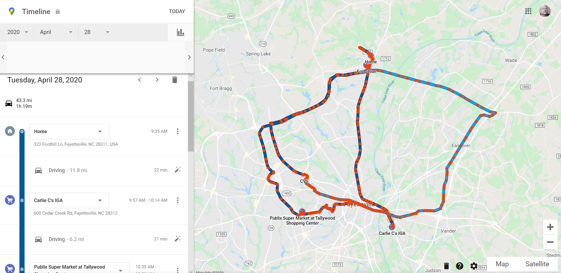 This is a free tracking option from Google Maps, that anyone can turn on, and if they keep their smartphone with them, it continues to track. It works if you are in a car, or if you are walking around in a store or mall.