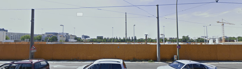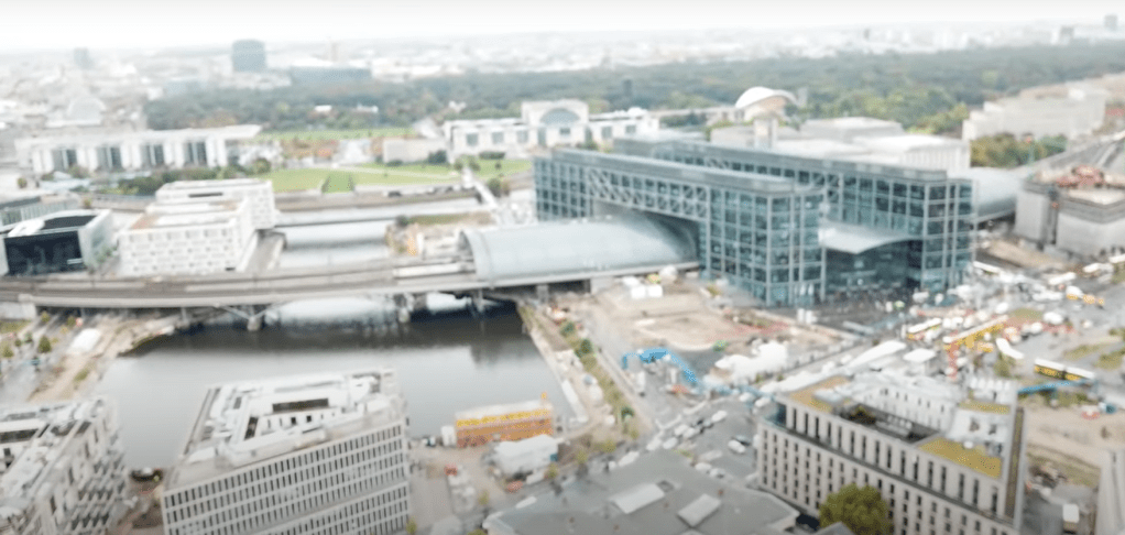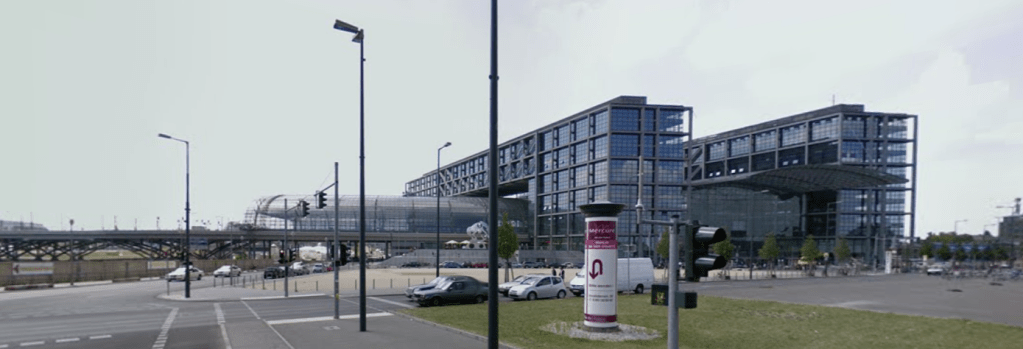 Finding the specific area of the smokestack, and knowing the drone video turned right, it was easy to find the nearby “Einkaufsbahnhof Berlin” on Google Maps, and then from StreetView: