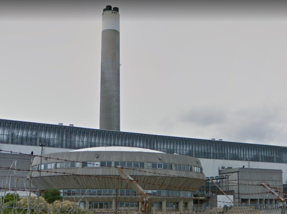 A few days ago, I was re-watching an episode of Endeavor (S4 E4 – “Harvest“), the prequel to Morse. In this episode, a man goes missing near a nuclear power plant. I decided to look for the nuclear facility on Google Maps, and found that the actual facility was the Fawley Power Station, a decommissioned (2013) “oil-fired” power plant located near Portsmouth & Southampton, UK. See below for closeup of Fawley Control Building (round like a space ship).