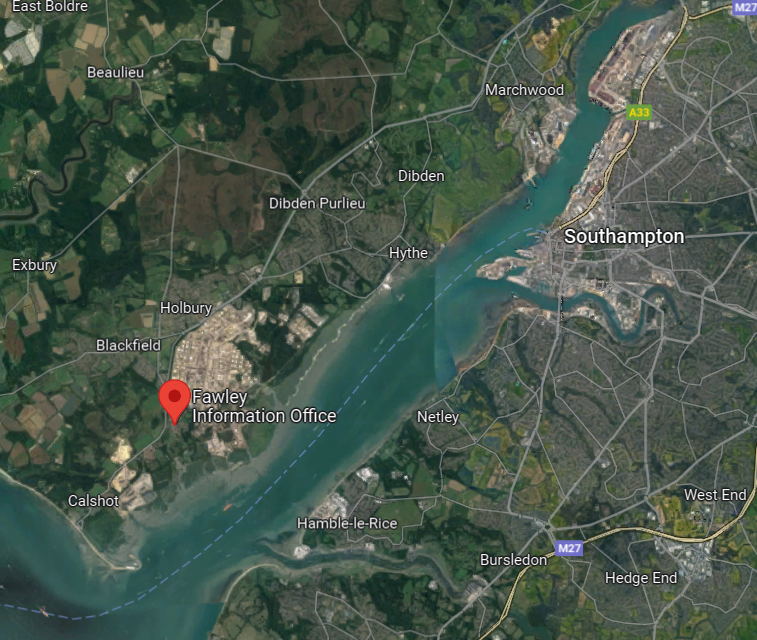 So I used StreetView to look around the Fawley Station area. The next day, I revisited this StreetView and there was a new option. Someone had actually walked along the lower fence. The aerial view had revealed that there were many large wind turbine blades stored on the premises (MHI Vestas).