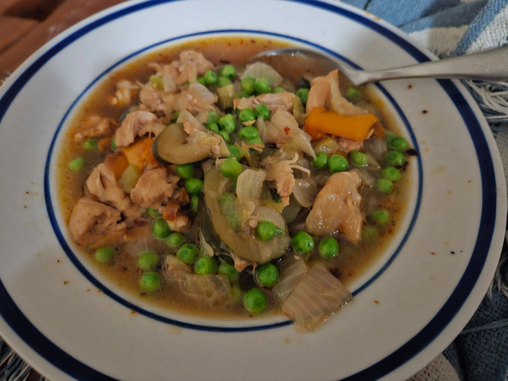 [NOTE 12/31/25]: I added okra to my stew tonight, but this is late in the season and these came out slimy. I like okra, even if they are slimy, but. And I definitely think if I had a green cabbage, it would be worth it to make a simple cabbage slaw. And a crispy corn meal fitter or cake would also be a pleasant addition. — Simple to dice up the ingredients. Three minutes cook time, with immediate Pressure Release helps make this a winner. And, really good repeatable flavor. [end NOTE]