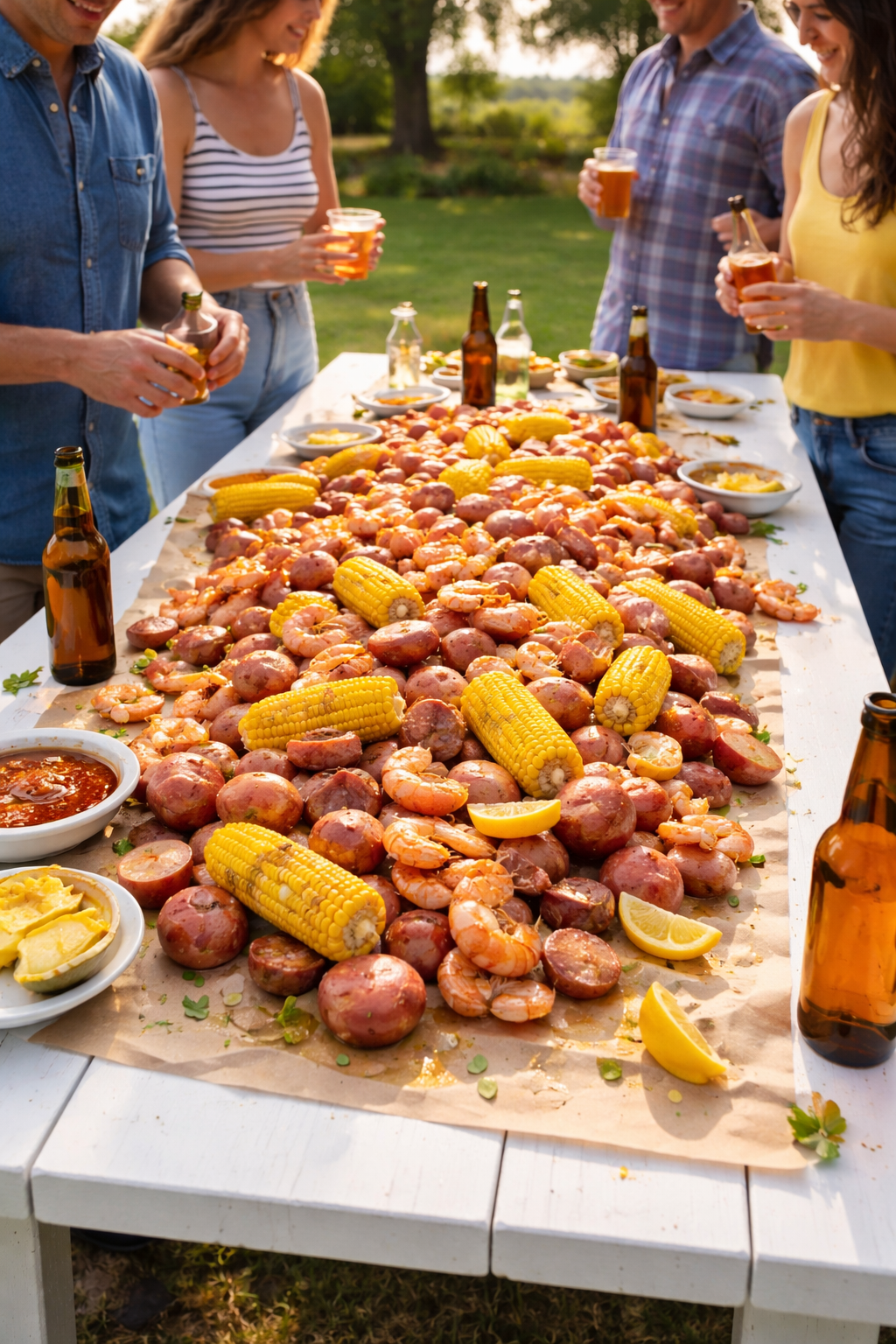 If there is any liquid in the bottom of the pot, I might suggest pouring it in a cup to drink like you would the “pot likker” of turnips or rutabagas. It has a bunch of good flavors. I wouldn’t add any salt that would get into the broth, because the broth can also be used to make a Frogmore Stew Soup later. *This is something that can’t be done when Frogmore Stew is prepared outdoors and for many people. Usually that broth is highly seasoned and would be too salty to consume. **Save the salt and just put that on the corn, potatoes and shrimp, then the broth will be drinkable and usable in a soup.