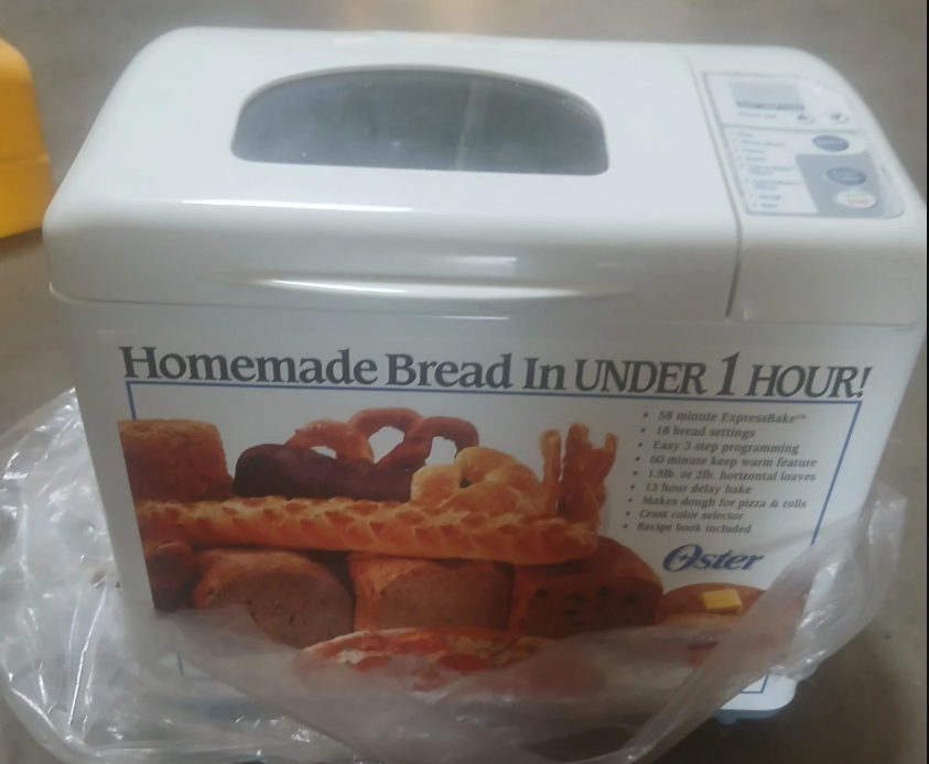 I haven’t made bread at home for many years but I did have a machine just like the one shown above and just got rid of it about six months ago. I was divesting myself of things and this was one that I did not use.