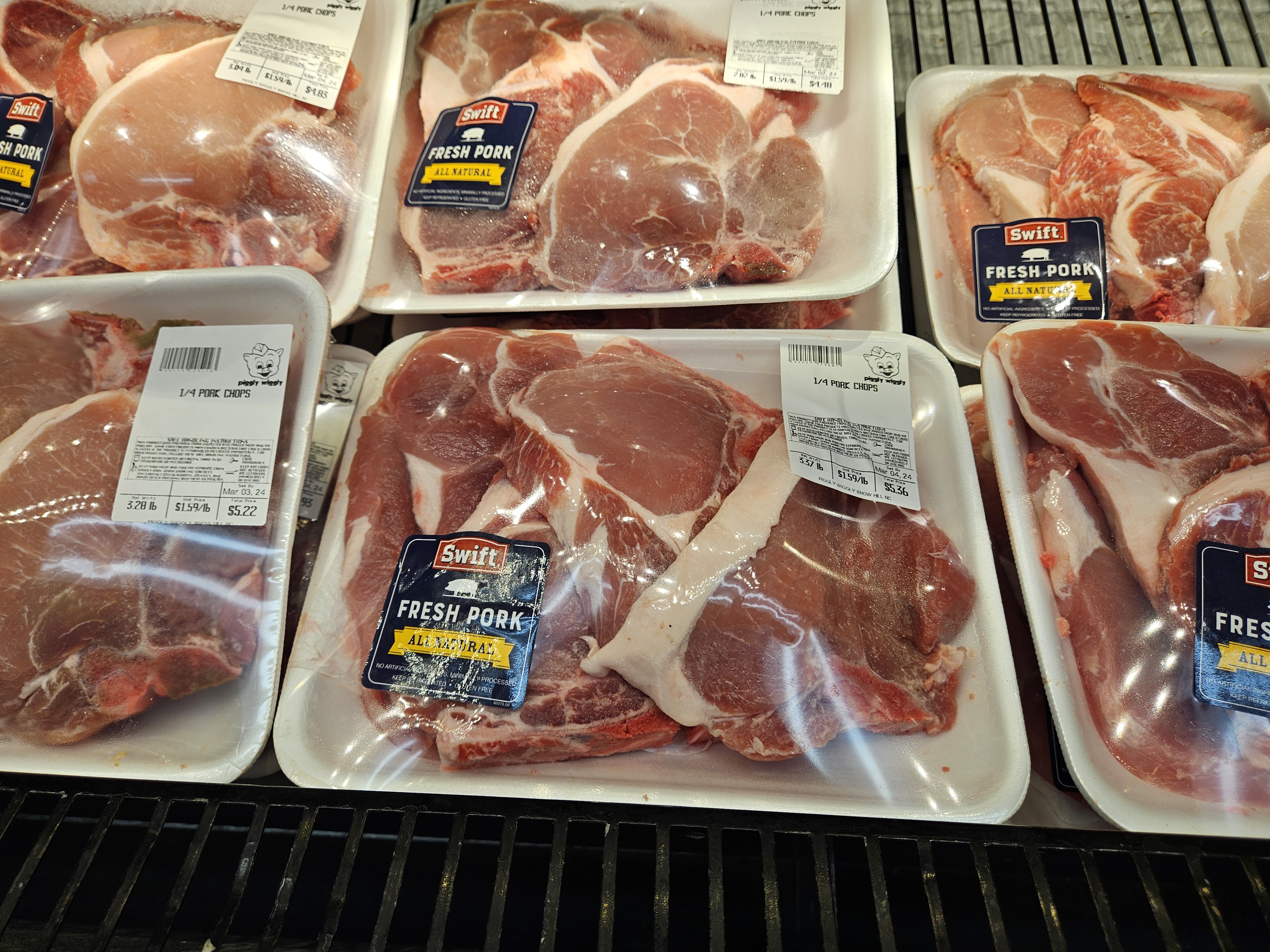 I walked through the store, first looking at a spice section, and eventually around to their meat section. The meat section had good looking cuts of meat, and I noted that some of the pork chops appeared to have a good price, per pound. Didn’t really plan to come back to this store on my way back to Fayetteville, but that is what I did do, and I bought a package of pork chops for $1.59 / pound. **I may have even bought the same package of pork chops that I had taken a picture of on my first visit of the day that morning.