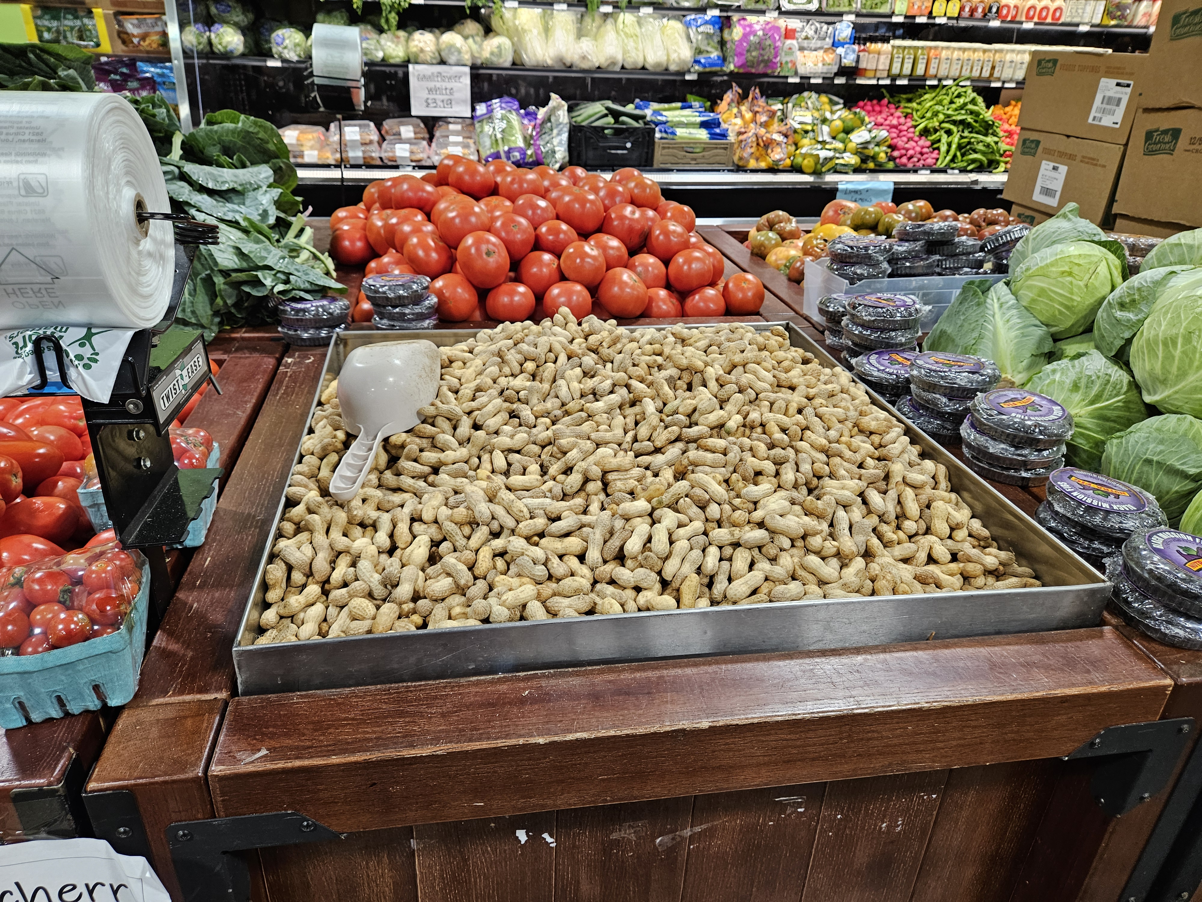 I do eat a bunch of nuts, and some dried fruit. I don’t eat a bunch of dried fruit because of the extra sugars, but I like a couple of pitted prunes (the really moist, shiny dark ones), a pitted date every so often, a few raisins with some roasted pumpkin and walnut pieces. I like the wasabi/soy powder on the pumpkins seeds. I like almonds and cashews, and I love raw peanuts in the shell from Pate’s. I ate them repeatedly for about 3 months until they were no longer available.