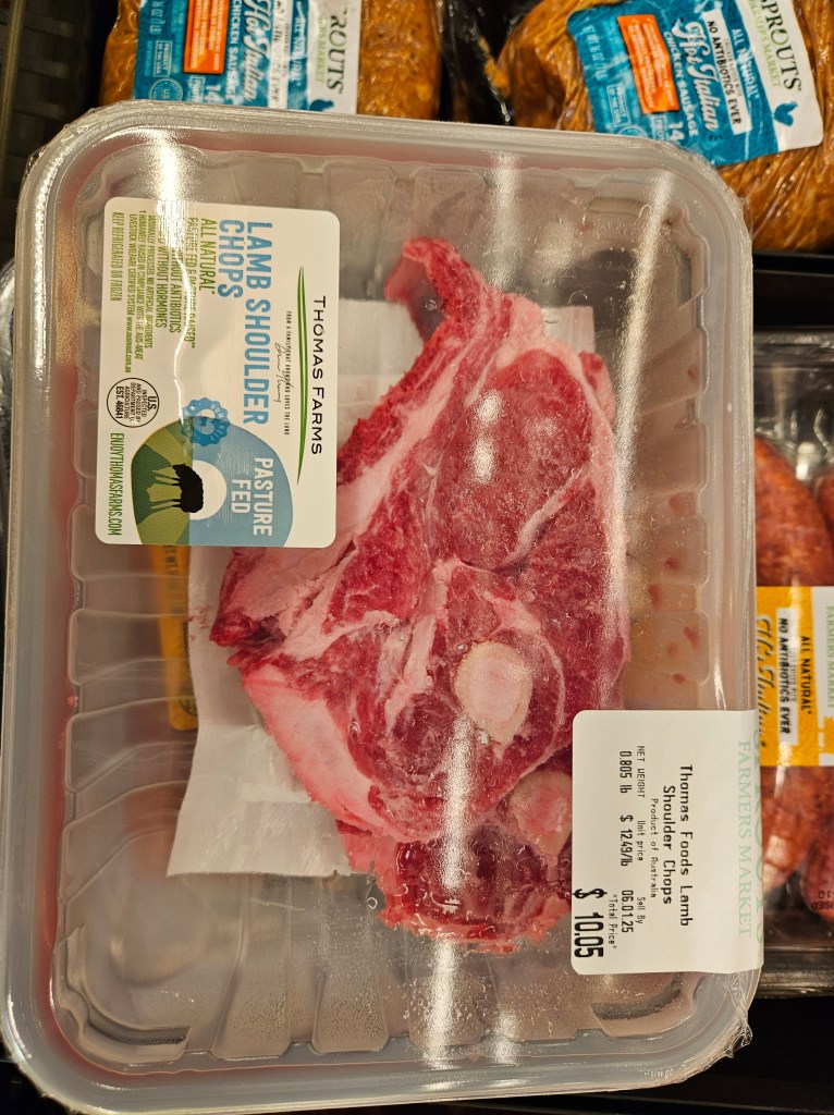 I may have even bought a round bone lamb chop at Sprouts, but normally I buy from Publix because they seem to have the freshest presentation, even though their Greewise brand is imported from New Zealand.