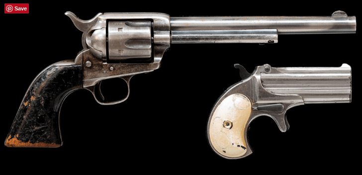 Look at those pearl handled shiny six shooters the Ranger is wearing. This seems to be a theme with Western “good guys.” Think about it. Would you know the good guy from these other distinctive weapons?